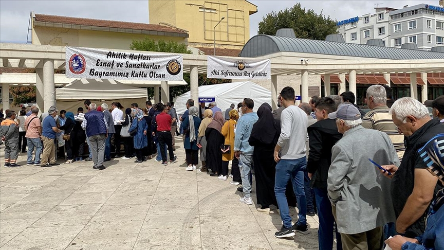 Yüzyıllardır süren gelenek kapsamında dağıtılan üçlünün bereket, cömertlik, kardeşlik ve dayanışmayı temsil ettiğini vurgulayan Öztürk, esnafa, vatandaşa, şehir dışından gelen misafirlere Ahi pilavı, helvası ve şerbeti ikram edildiğini belirtti.
