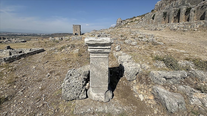 Anlık gelişmeler için AA Canlı Önceki yıllarda tespit edilen ve üzerinde Menodora'nın kent için yaptığı hayırlar hakkında bilgilerin yer aldığı yazıt da mezarın uygun bir yerine dikildi.