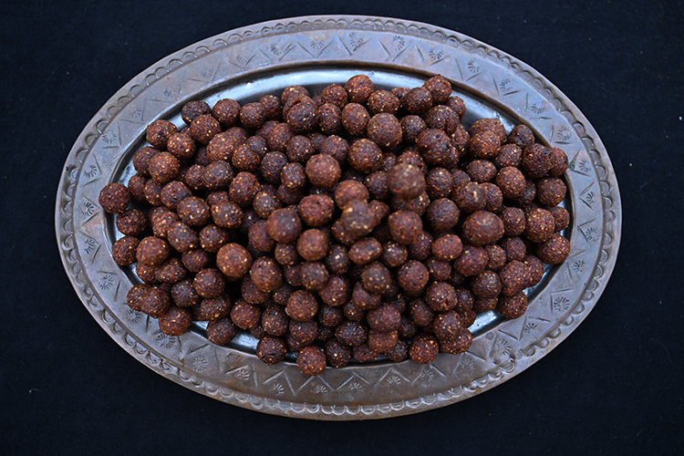 11. Piştikten sonra tabaklara bırakılan yemeğin üzerine köfteler eklenir.