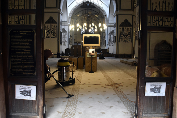 Bursa'nın Osmanlı yadigarı simgesi Ulu Cami'nin halıları değiştiriliyor