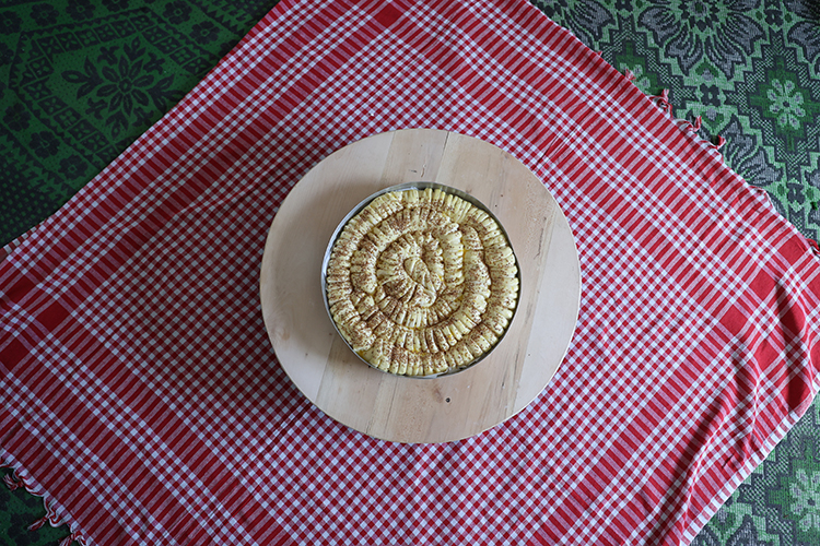 - Yuvarlanan parçalar yassılaştırılır, ortasına lor konulup kapatılır.