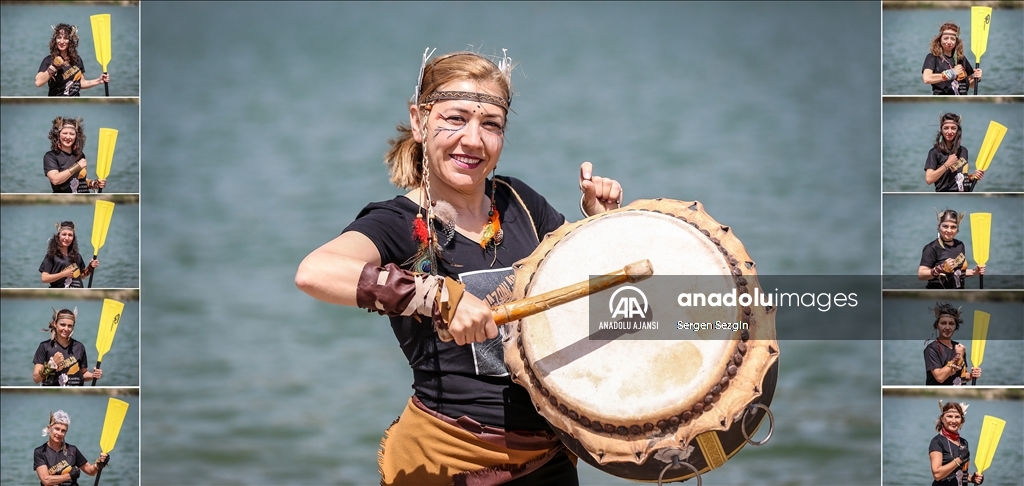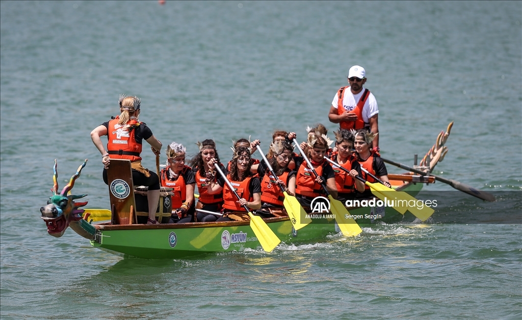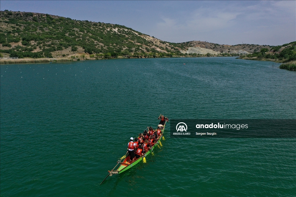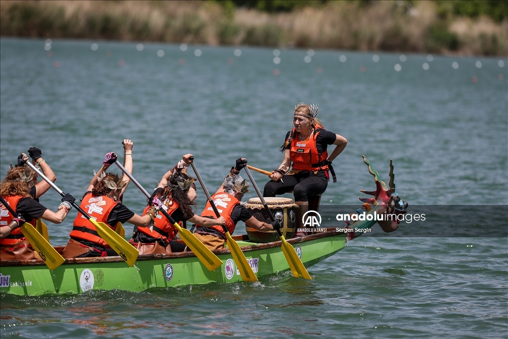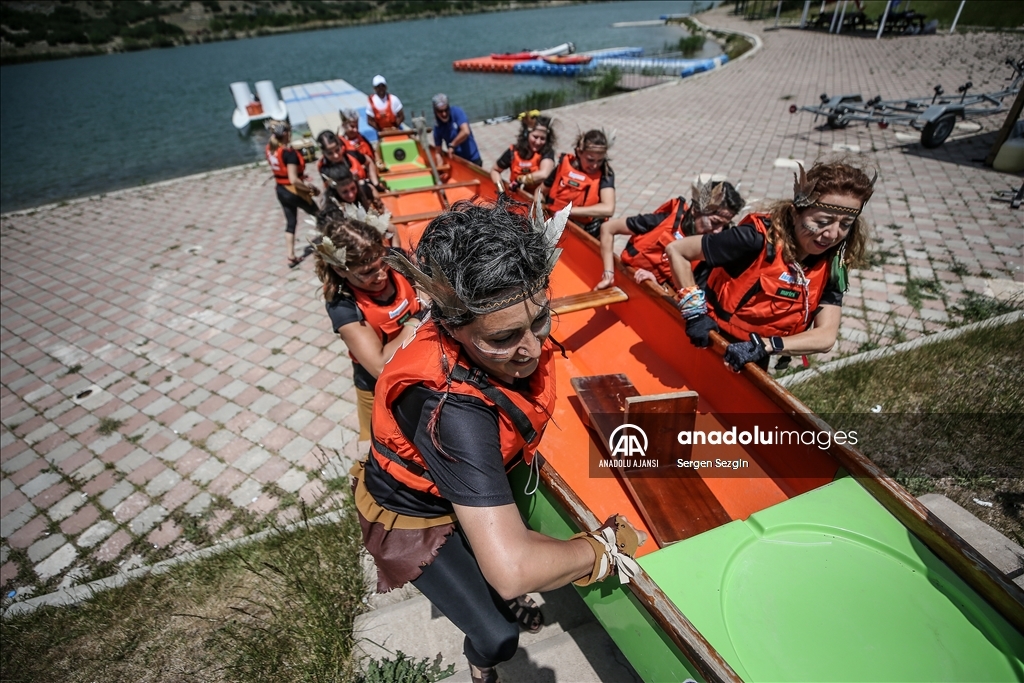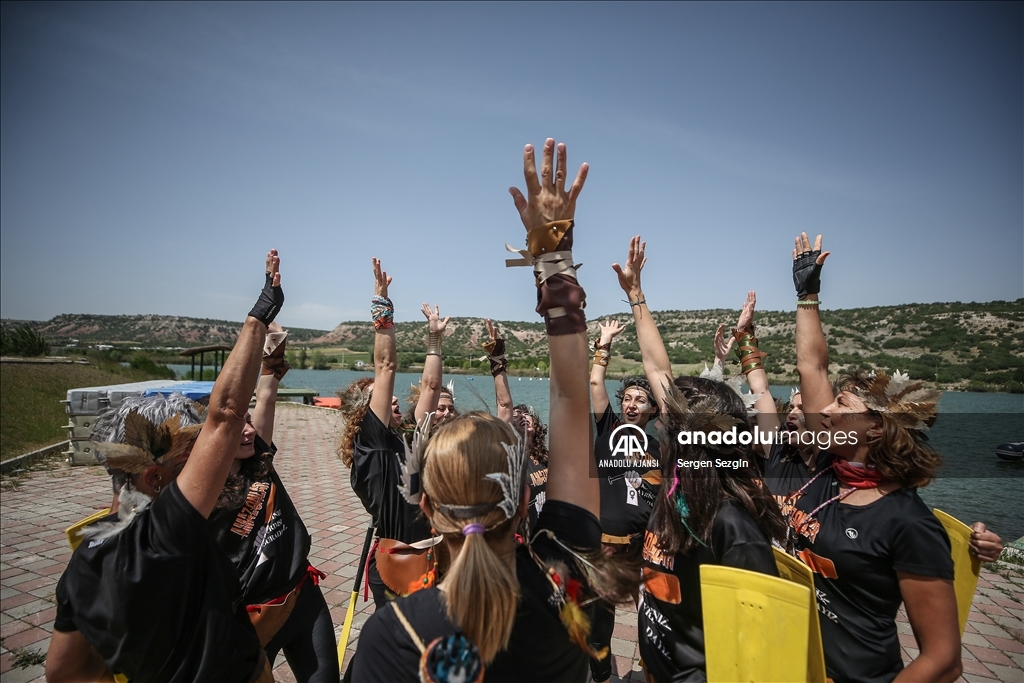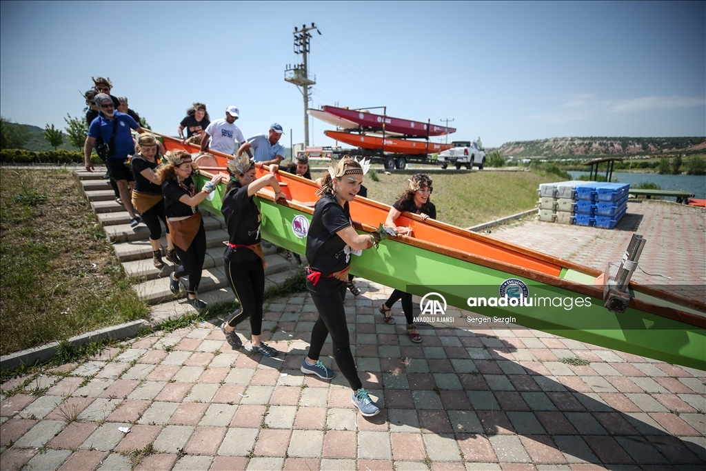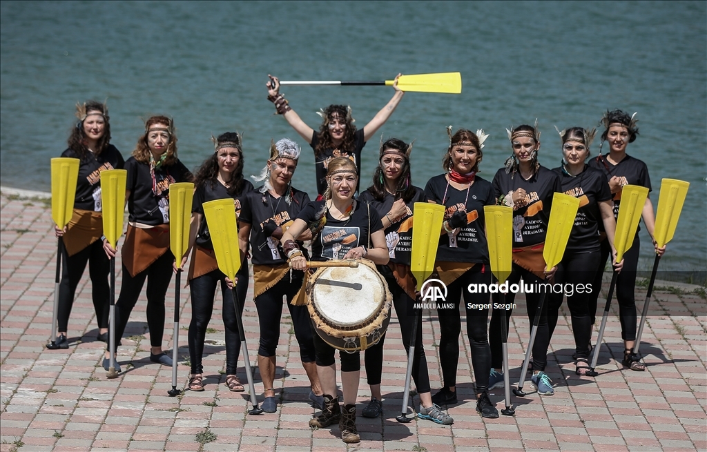 "Amazonlar", İstanbul'da 11-12 Haziran'da gerçekleştirilecek Kurumlararası Dragon Festivali'ne Eskişehir'deki Sarısungur Göleti'nde antrenman yaparak hazırlanıyor.