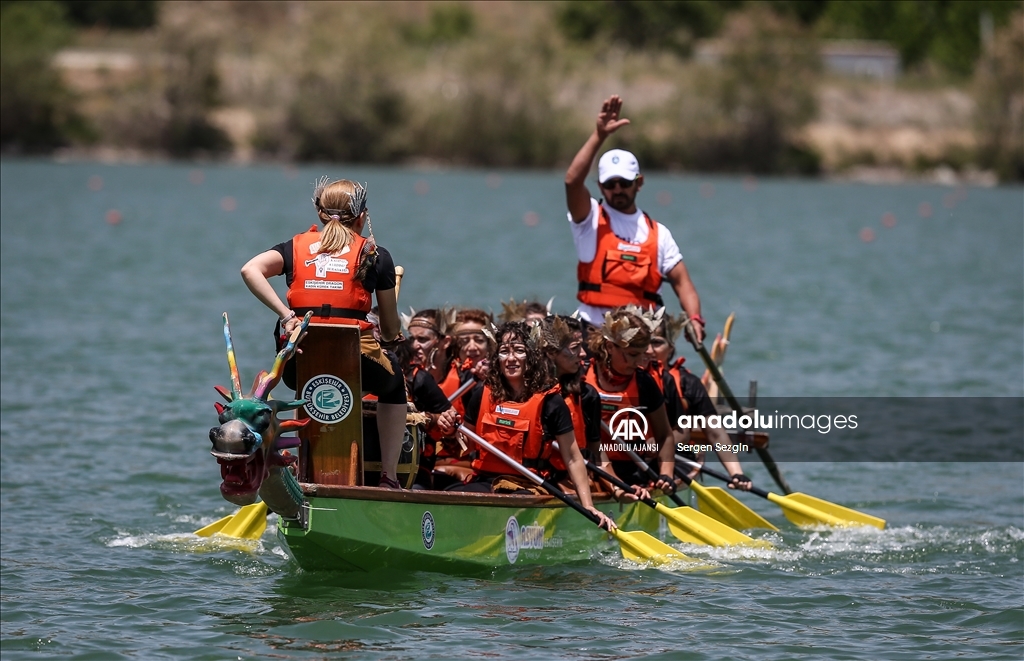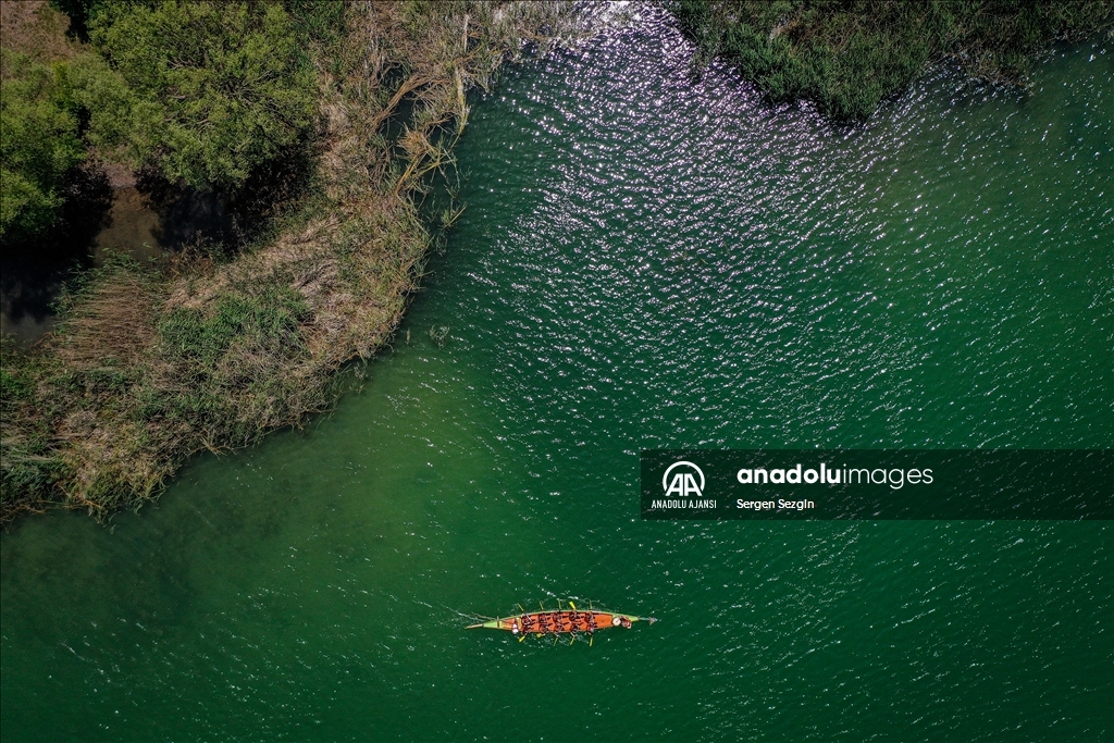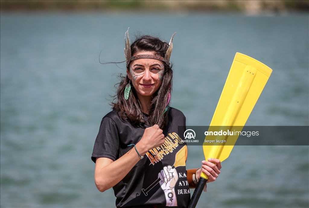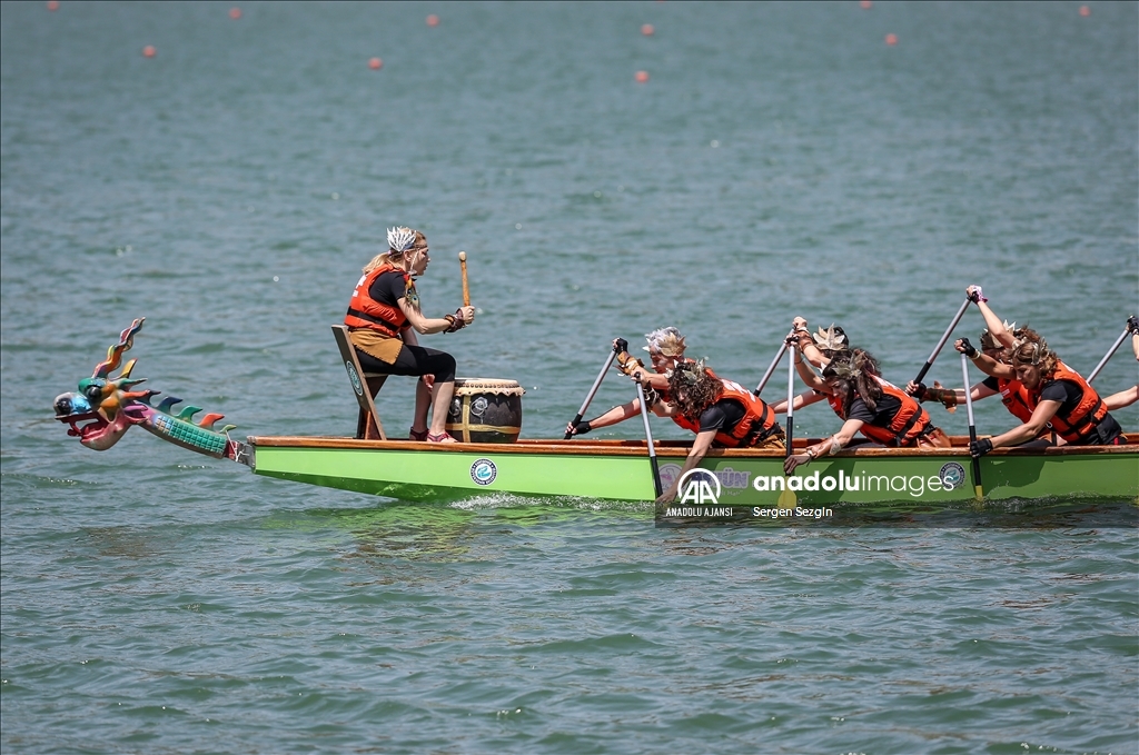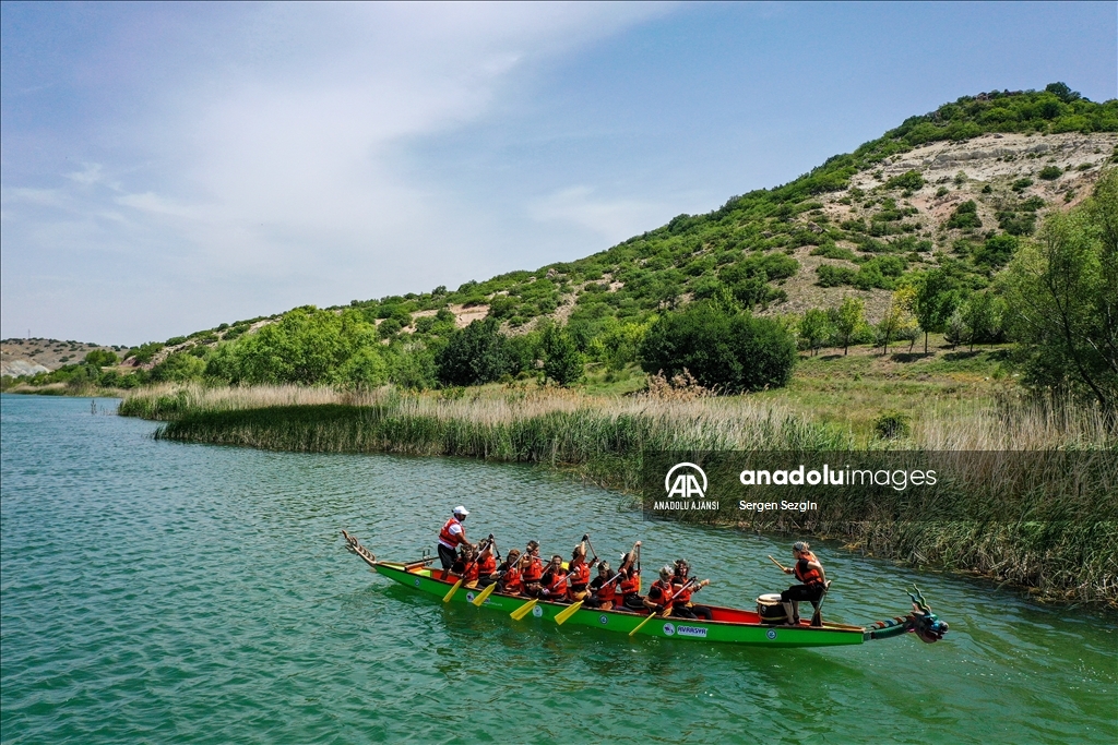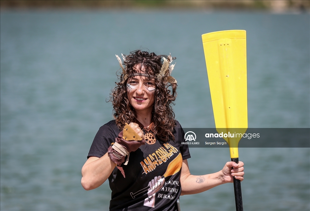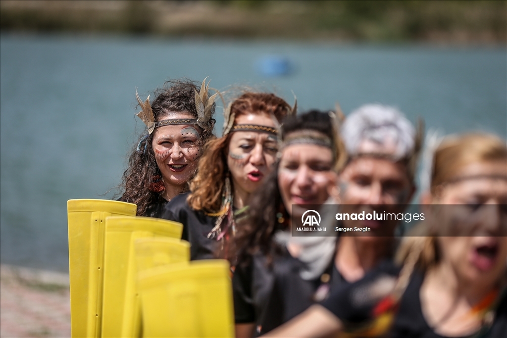 "Amazonlar", İstanbul'da 11-12 Haziran'da gerçekleştirilecek Kurumlararası Dragon Festivali'ne Eskişehir'deki Sarısungur Göleti'nde antrenman yaparak hazırlanıyor.
