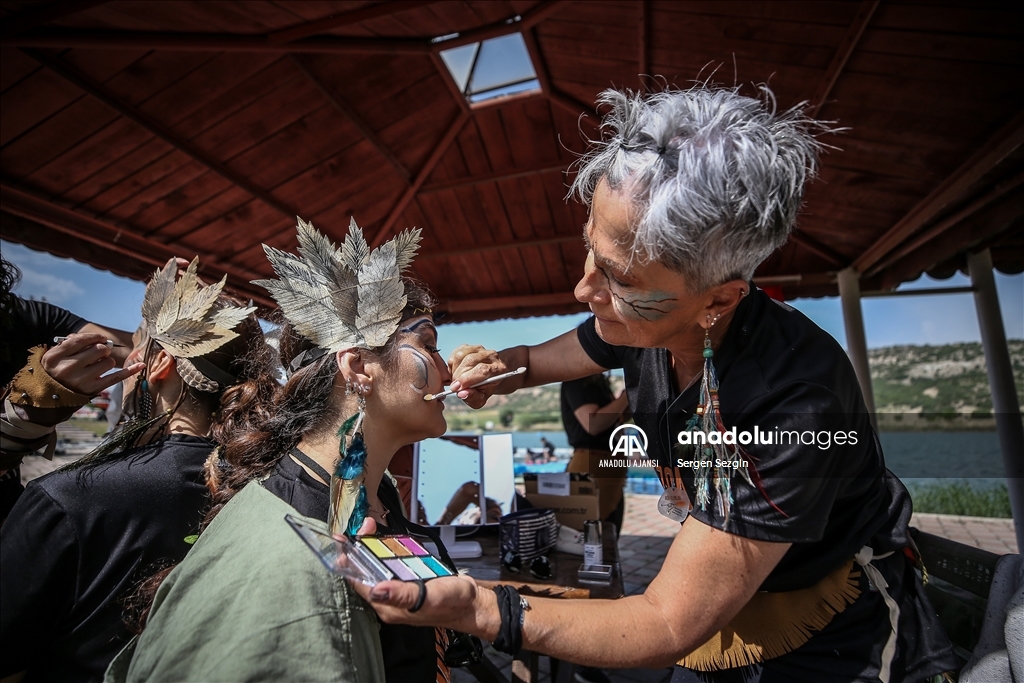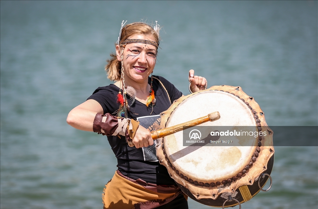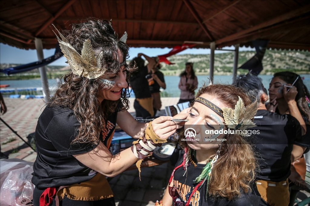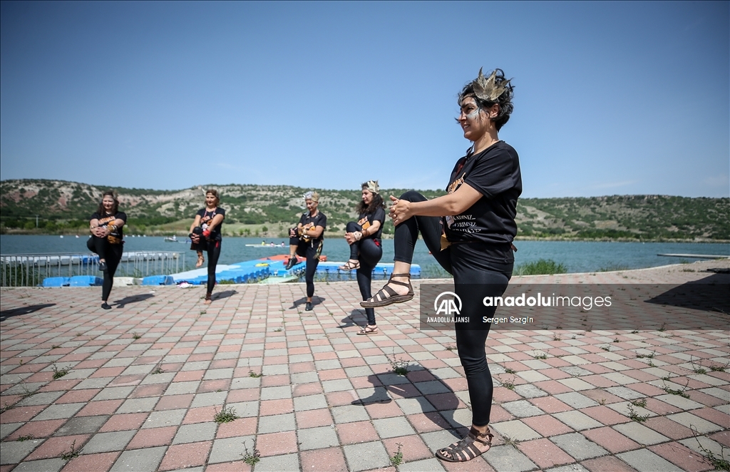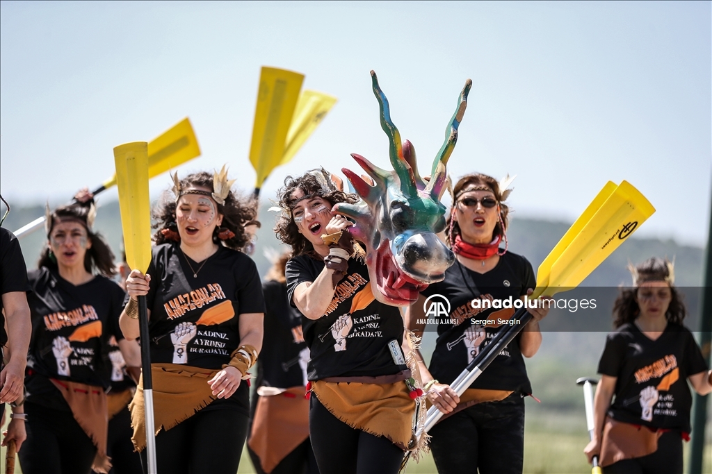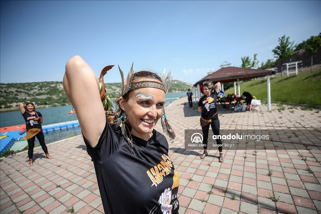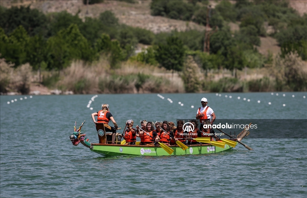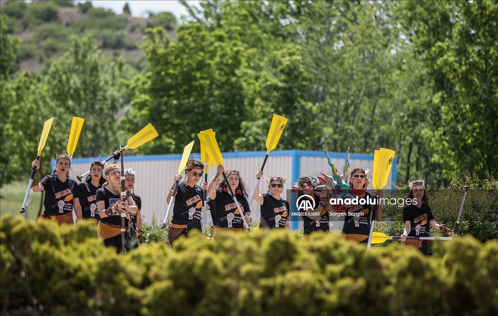 "Amazonlar", İstanbul'da 11-12 Haziran'da gerçekleştirilecek Kurumlararası Dragon Festivali'ne Eskişehir'deki Sarısungur Göleti'nde antrenman yaparak hazırlanıyor.