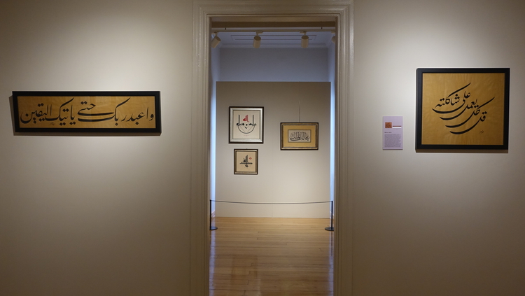 "Üçüncü seçki ise ramazan münasebetiyle hattan oluşuyor. Hatta geniş perspektifli bir açıdan bakmayı arzu ettik. Halihazırda sergilenen seçkideki en eski eser Şeyh Hamdullah'a ait ve 499 yıl öncesine tarihleniyor. O tarihten bugüne dek hat sanatına değmiş belirli isimlere yer vermek durumunda kaldık. Gönül isterdi ki binlerce eser asabilelim ama bu çok mümkün olmadığı için izleyiciye ufak bir seçki üzerinden hat sanatının ülkemizdeki gelişimini göstermeyi arzu ettik."