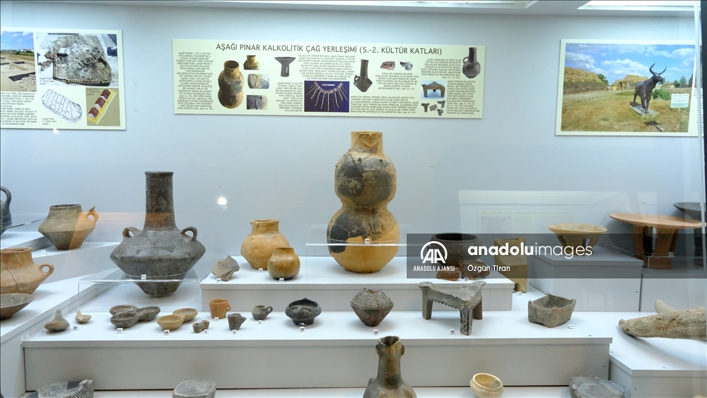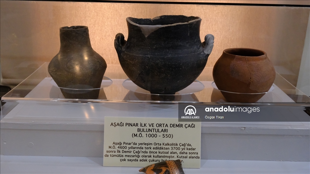 "Burada yapılan kazılar sonucu elde edilen eserler de müzemizde sergilenmektedir. Aslında biz Aşağıpınar'a 'Doğu Trakya'nın Göbeklitepesi' de diyebiliriz. O dönemi temsil eden, o dönemde insanların günlük hayatlarında kullandıkları el baltaları, kemik aletler, kil bilezikler, kemik kaşıklar, kap kacak bulunuyor. Bunun haricinde törenlerde kullandıkları törensel kaplar, figürler, ana tanrıça heykelcikleri bulunuyor."