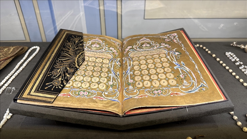 Kazasker Mustafa İzzet Efendi'in talebesi saray hattatı Muhsinzade Abdullah Efendi'nin yazdığı, yaklaşık 200 yıllık Şehzade Cüz ile fildişi süslemeli Tevrat da sergilenen eserler arasında yer alıyor.