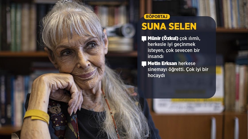 "Doğru, 'Gecelerin Ötesi' ile başladık. Metin Bey herkese sinemayı öğretti. Çok iyi bir hocaydı. Bir sahneyi 6-7 kez çekerdi. Sonra kopyaları bütün ekiple birlikte seyrederdi ve (Erksan) sorardı 'Hangisini seçeyim?' diye. Bakıyorum ilk oynadığımda daha bir heyecanlıyım. Oyunu o kadar beğenmiyorum, ikincide oturtmuşum orada güzel oynamışım. Üçüncüde aynı oyunu vermişim. 4-5-6 enerji düşmüş. Benim oyunum o kadar iyi değil, ben görüyorum onu. Söylüyorum, 'İkinciyi seçin.' 'Hayır, onu seçemem.' diyor. Niye? diyorum. 'Çünkü bak orada beklemediğimiz bir şey geçmiş, bir kağıt geçmiş. Onun bağlantısını ben yapamam.' diyor. 'Peki, ne olacak yani?' diyorum. Ben çocuğum ya. 'Şu olacak, ben kaç kere çekersem hep aynı performansı göstermek zorundasınız. Çünkü ben ancak bütün şartların tamam olduğu, şaryonun titremediği, önünden kuş geçmediği, birinin geçip oradan el sallamadığı ve temiz olan sahneyi seçerim. Siz oynarken o olanları görmüyorsunuz ama ben görüyorum. Dolayısıyla altı kere çekiyorsam, altı kere en iyi oyununu vermek zorundasın. Hiçbir zaman performansını düşürmeyeceksin' dedi. Sinemada benim öğrendiğim bu oldu."