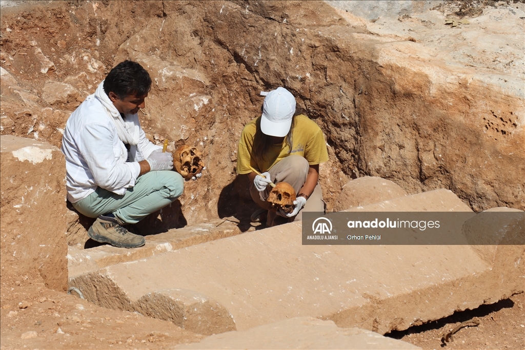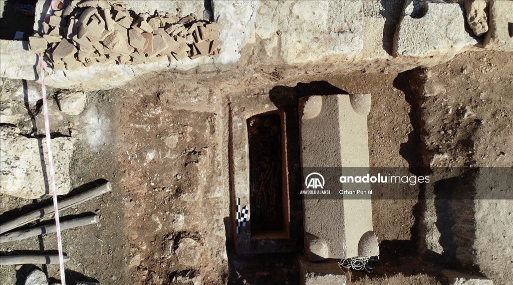 Bu yıl 2. etap kazılarının 4'üncü gününde sanduka tipli mezar bulunduğunu aktaran Alkan, "Kazı çalışmalarında bir kapak ile karşılaştık ve bu kapağı kaldırdığımızda 4 bireye ait insan iskeleti bulduk. Bu iskeletlerin günümüzden 1800 yıl öncesine ait olduğunu düşünmekteyiz." dedi.