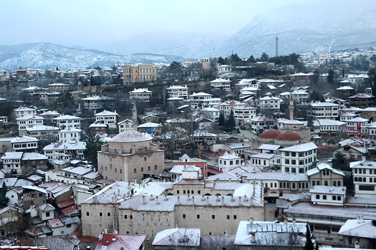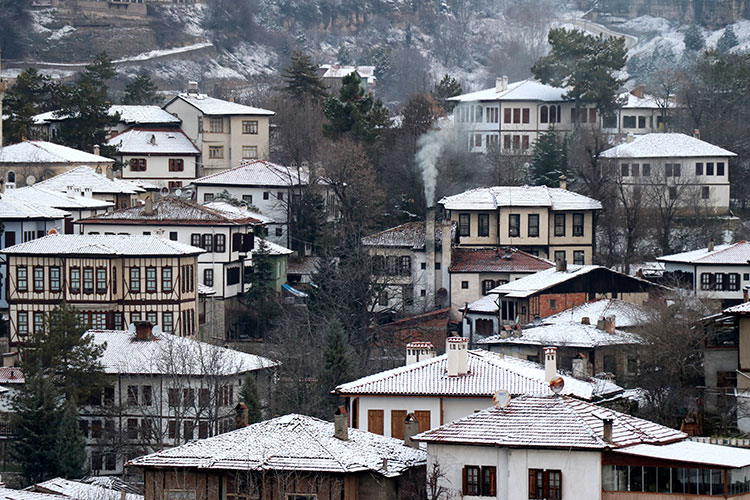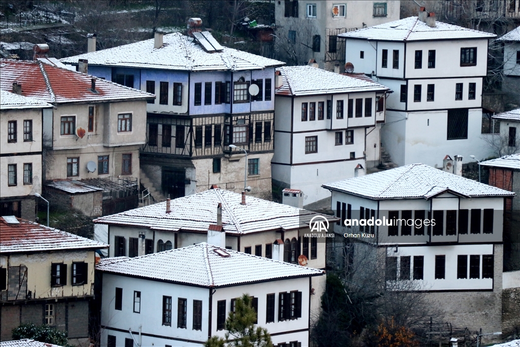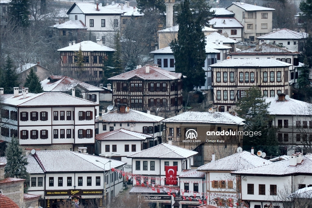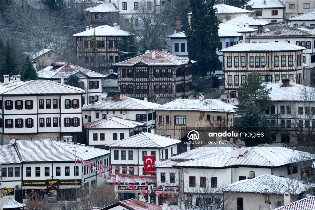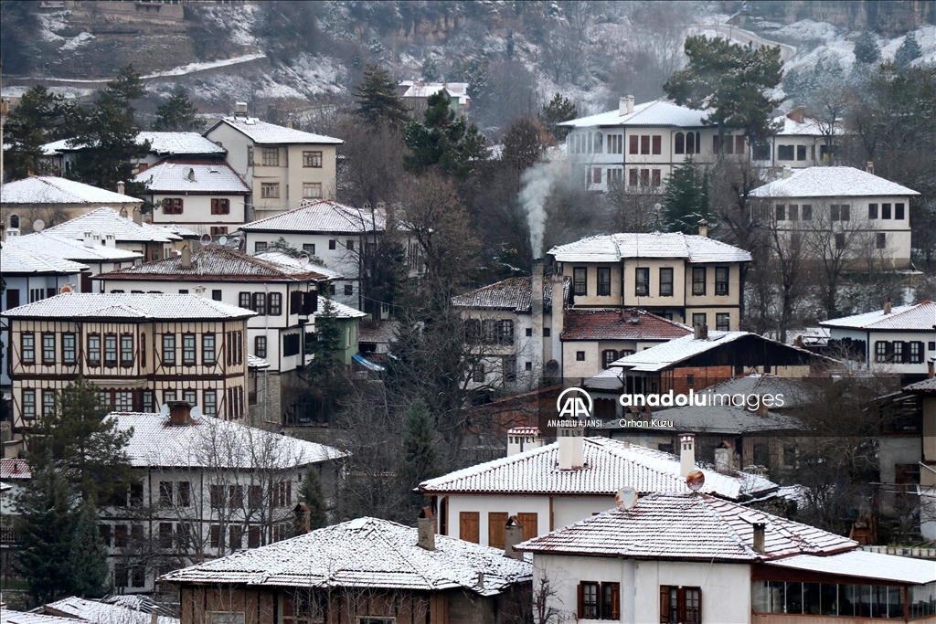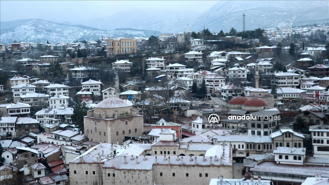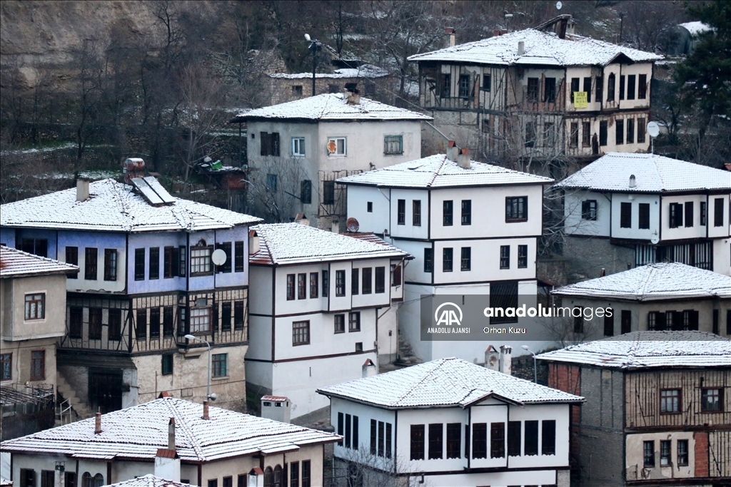 Safranbolu'nun tarihi yapıları karla kaplandı
