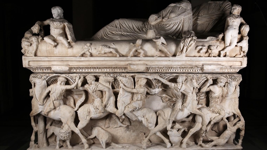 Karaman'ın Ambar Köyü'ndeki Sidamara Antik Kenti'nde 140 yıl önce keşfedilen lahit, eksik parçası Eros başına kavuştu.