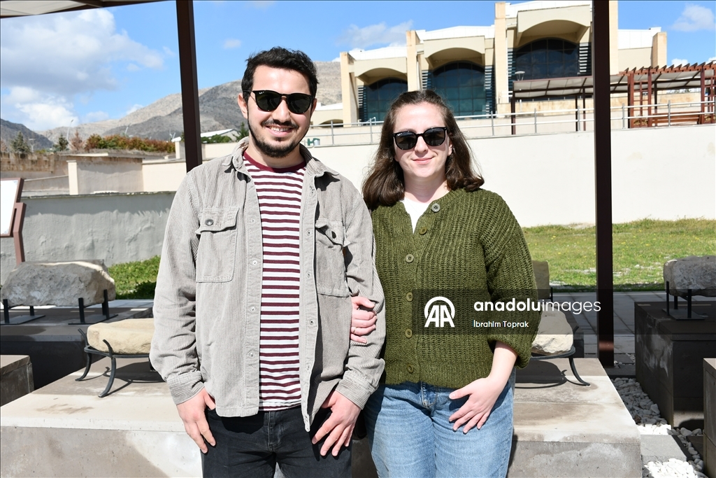 Eşiyle Diyarbakır'dan gelen Merve Çalımbak ise gezi rotalarına Hasankeyf'i de eklediklerini, bu vesileyle ilk kez açık alanda sergilenen eserleri görme şansı yakaladıklarını belirtti.