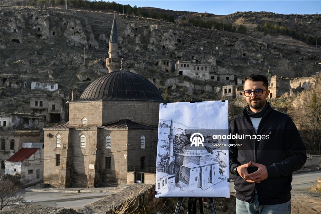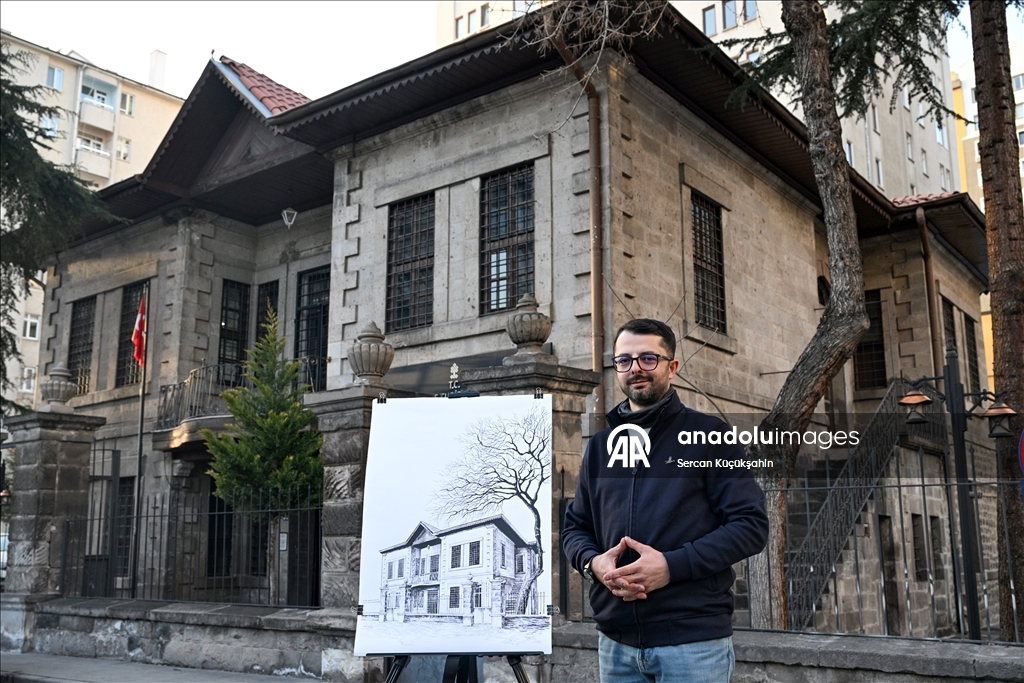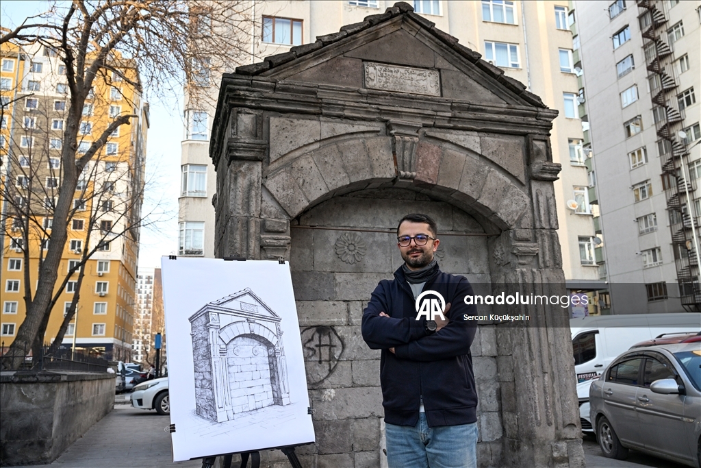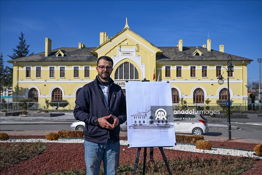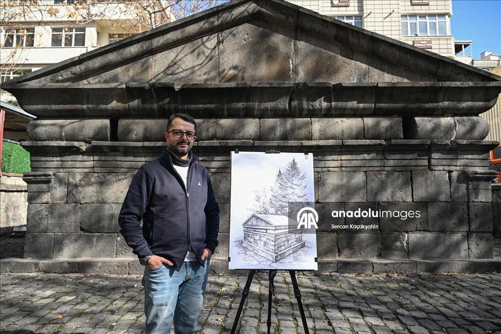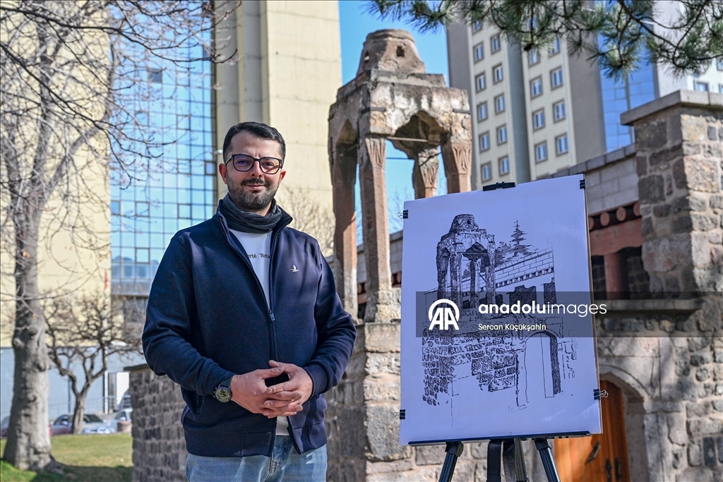 Kayseri'de ressam bir ailenin üçüncü kuşak temsilcisi 38 yaşındaki Muhammed Emin Gürpınar, kentteki tarihi eserleri çizimleriyle ölümsüzleştiriyor.