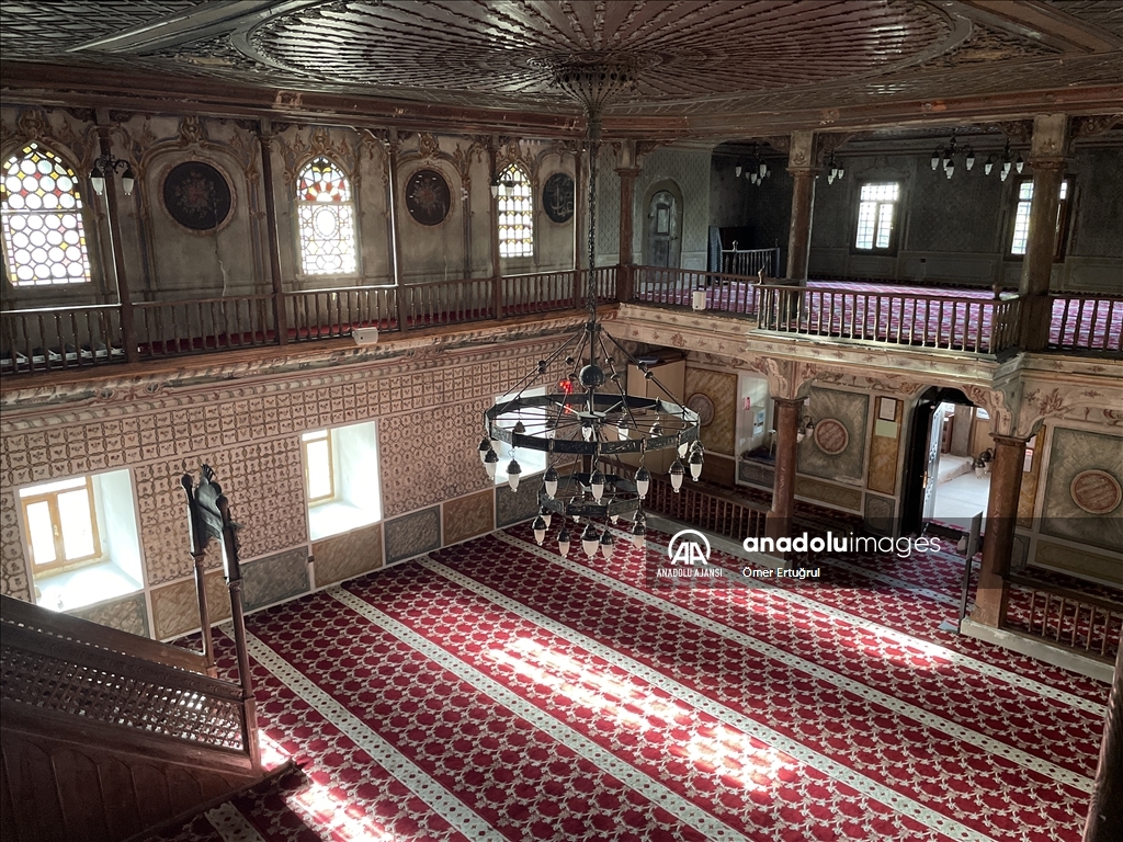 Kitabesinden 221 yıllık olduğu belirtilen cami, içerisindeki süslemelerle dikkati çekiyor.