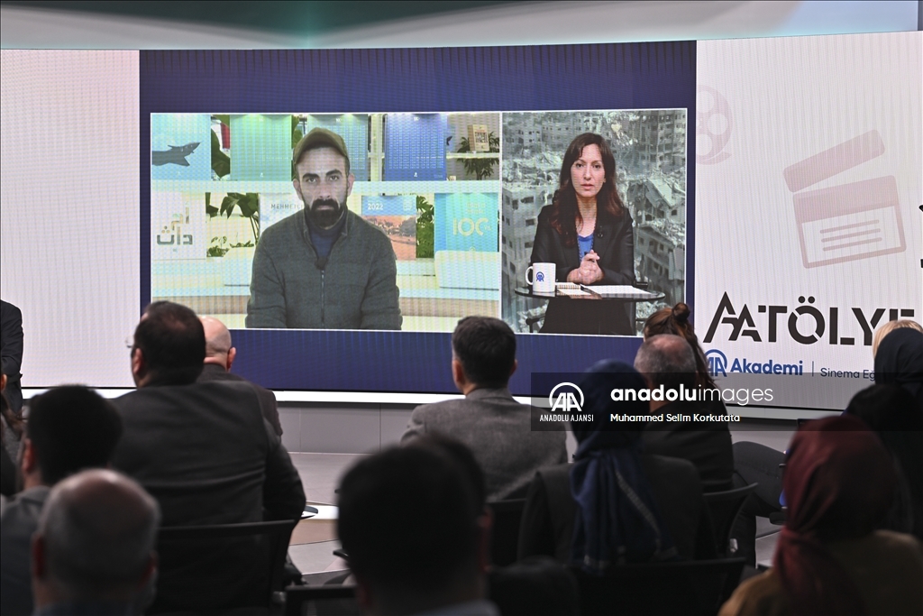 AA Dış ve Ekonomi Haberleri Yayın Müdürü Barışkan Ünal'ın moderatörlüğünde gerçekleşen etkinlikte, İsrail'in Gazze'ye saldırılarını sınırda takip eden Başmuhabir Mustafa Deveci ile Gazze içerisinden takip eden foto muhabiri Mustafa Hassona ve kameraman Muhammed al-Alul, yaşadıkları deneyimleri paylaştı.