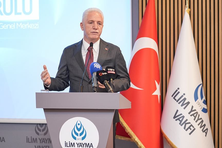 "Dünya böylesi bir çukura doğru ilerlerken tabii ki Türkiye'nin Cumhurbaşkanımız liderliğinde bir istikrar adası olarak kendini muhafaza edebilmesi ve bölgedeki bu gerilimi düşürmek için çalışıyor olması çok kıymetli. Biliyorsunuz, bizim fıkıh geleneğimizde inancımıza göre savaş zamanında da ilim ehlinin ilmine devam etmesi esastır. Dolayısıyla biz İlim Yayma Vakfı olarak ilme yönelik bu çalışmamızı çok daha güçlü şekilde yapmalıyız ki dünya tamamen dağılıp toparlanmaya başladığı zaman birileri dünyaya fikri önderlik edebilsin."