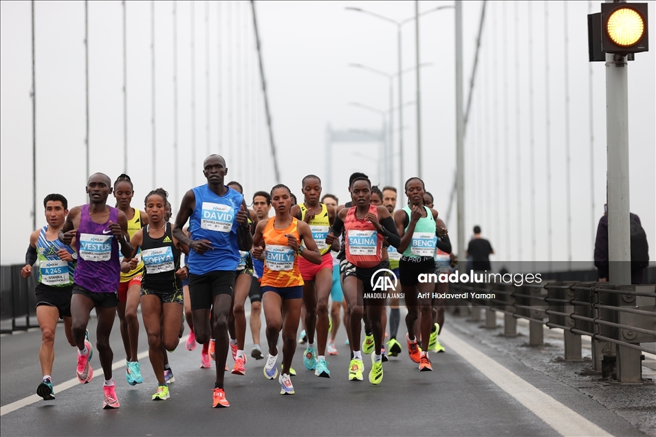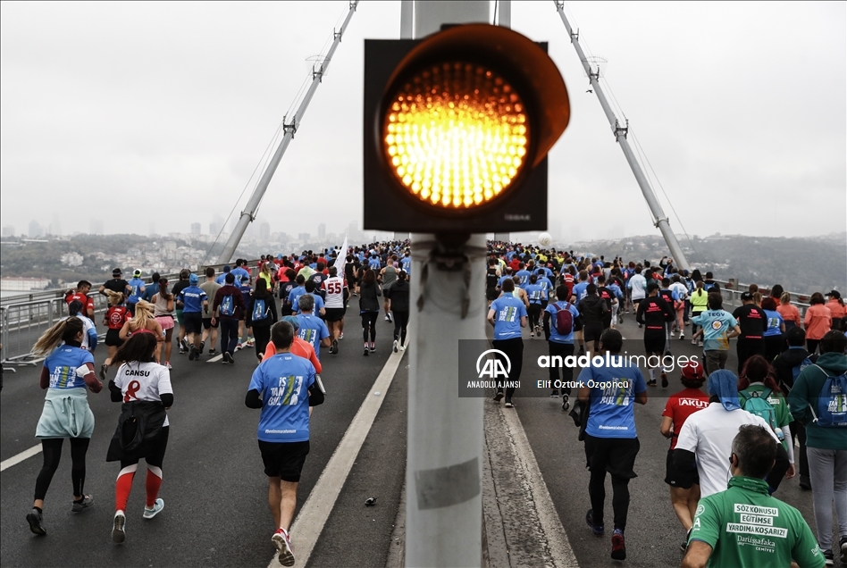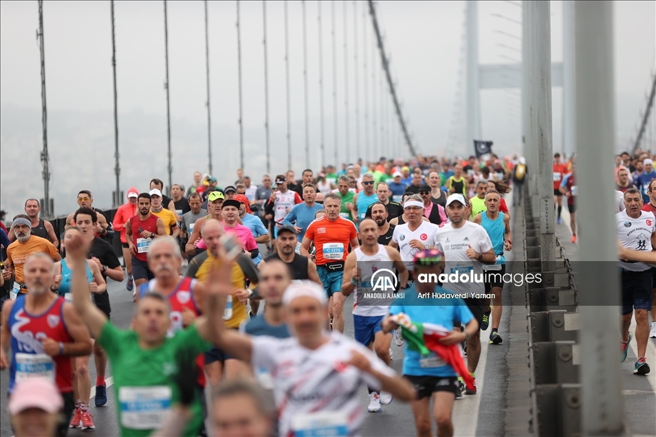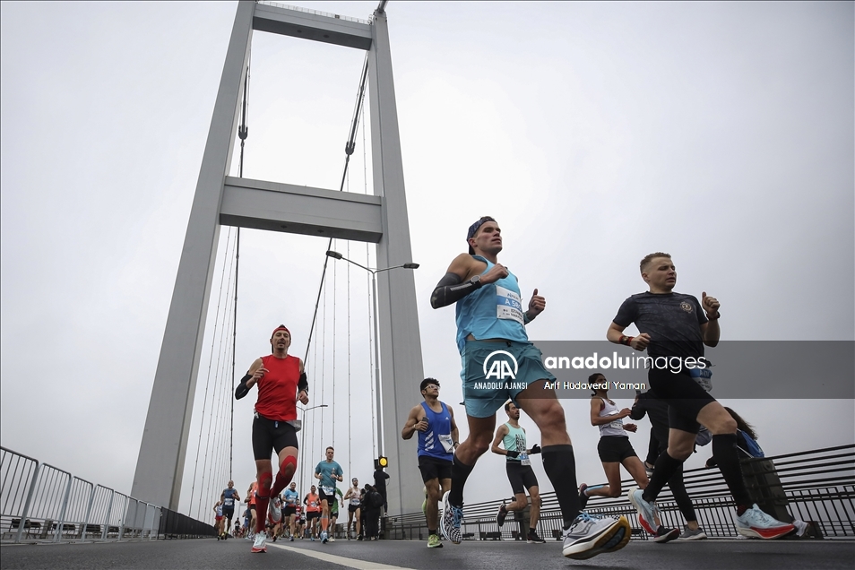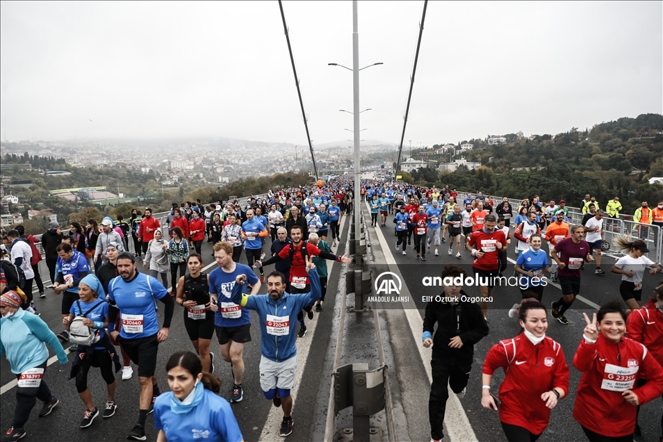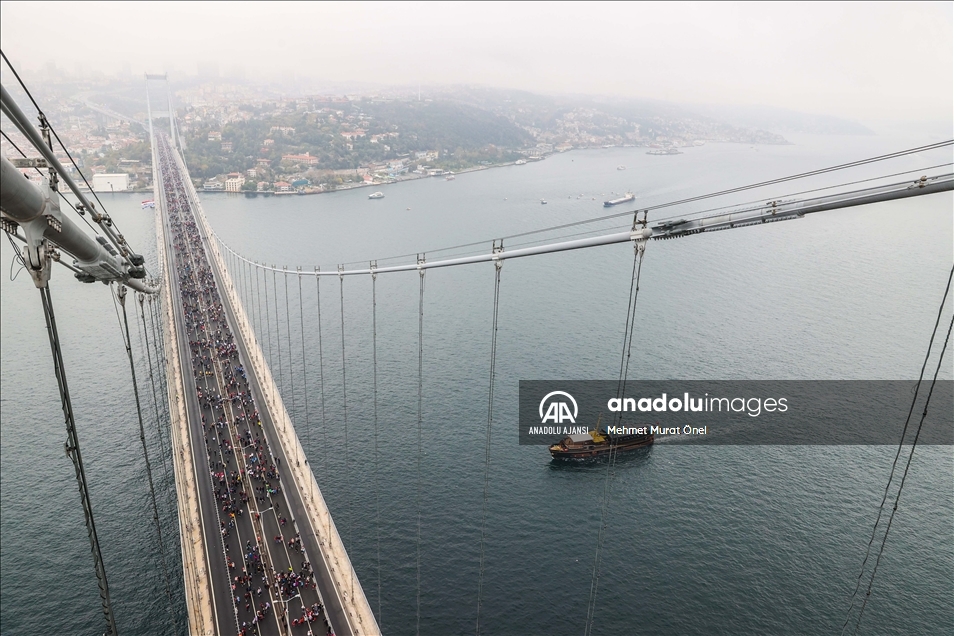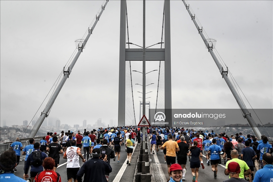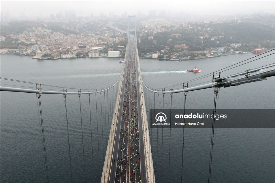 İstanbul Büyükşehir Belediyesi iştiraki Spor İstanbul tarafından organize edilen, N Kolay'ın isim sponsorluğundaki 43. İstanbul Maratonu koşuldu. Kademeli başlayan maratonda sporcular ve vatandaşlar, 15 Temmuz Şehitler Köprüsü'nden geçti. ( Mehmet Murat Önel - Anadolu Ajansı )Mehmet Murat Önel