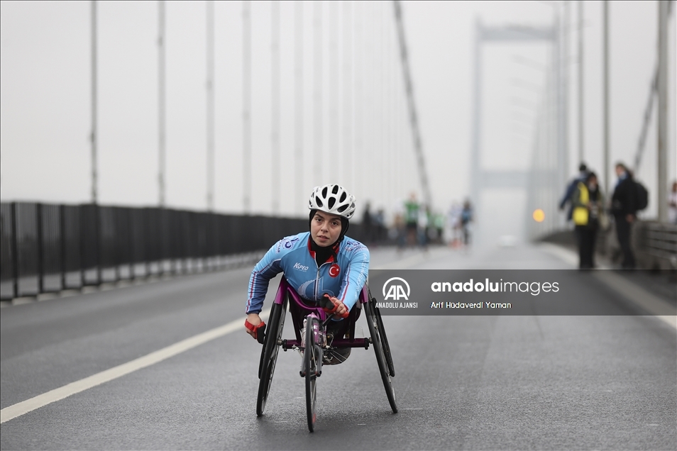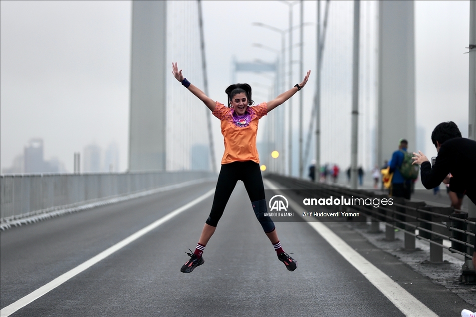 İstanbul Büyükşehir Belediyesi iştiraki Spor İstanbul tarafından organize edilen, N Kolay'ın isim sponsorluğundaki 43. İstanbul Maratonu başladı. Kademeli başlayan maratonda sporcular ve vatandaşlar, 15 Temmuz Şehitler Köprüsü'nden geçti. ( Elif Öztürk Özgöncü - Anadolu Ajansı )Elif Öztürk Özgöncü
