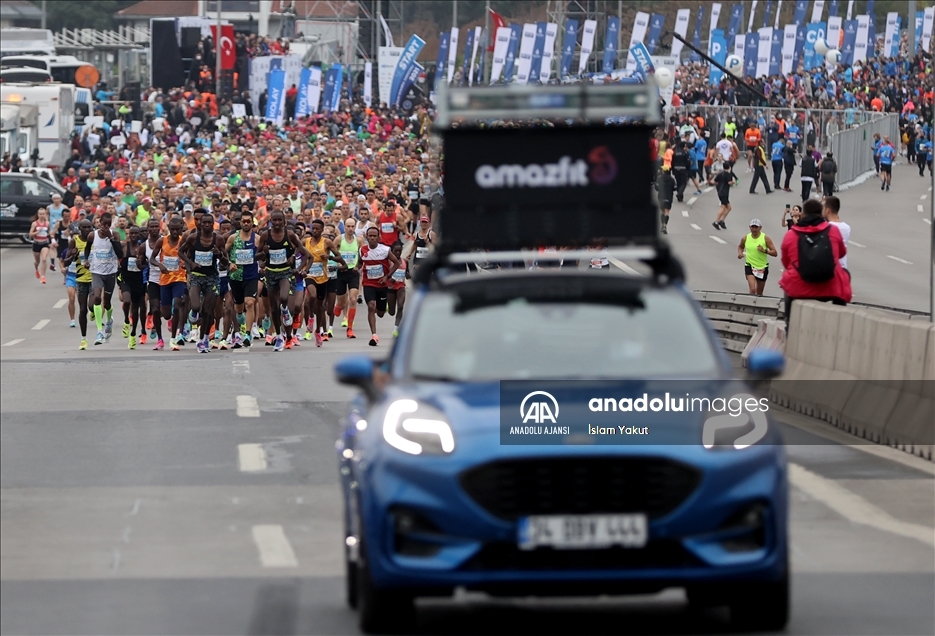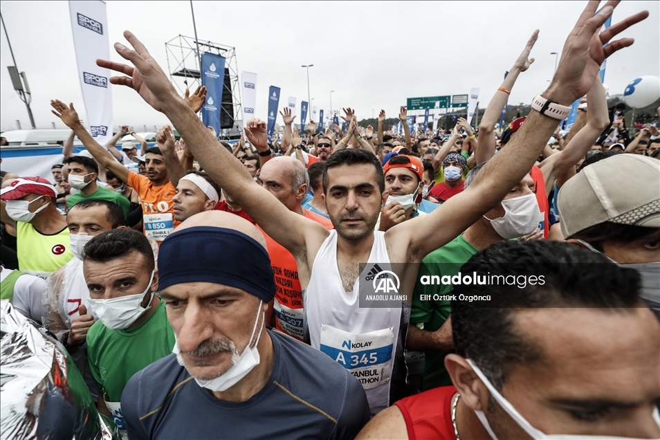 İstanbul Büyükşehir Belediyesi iştiraki Spor İstanbul tarafından organize edilen, N Kolay'ın isim sponsorluğundaki 43. İstanbul Maratonu başladı. "Dünyanın kıtalararası koşulan tek maratonu" unvanını taşıyan maratonun startı 15 Temmuz Şehitler Köprüsü'nün 250 metre gerisinden verildi. ( Mehmet Murat Önel - Anadolu Ajansı )Mehmet Murat Önel