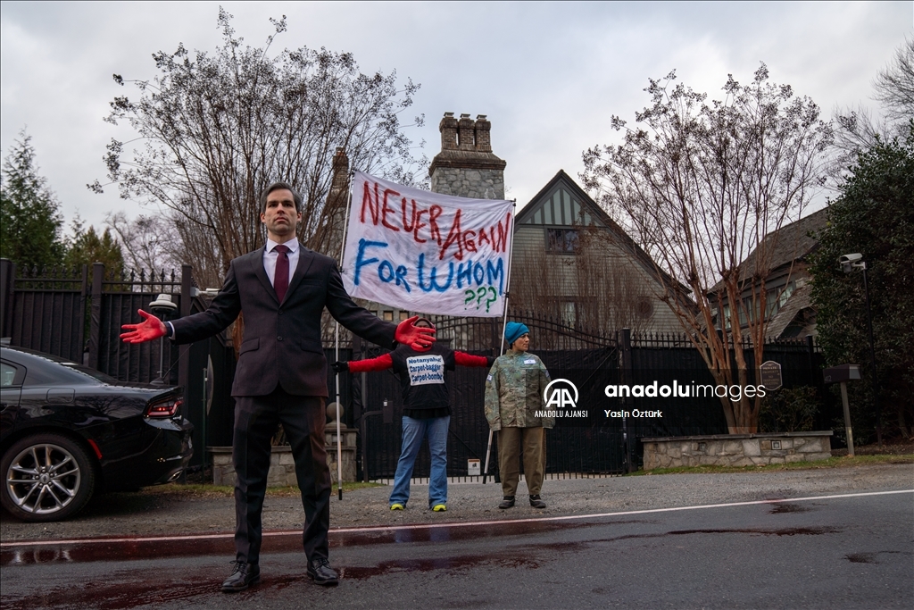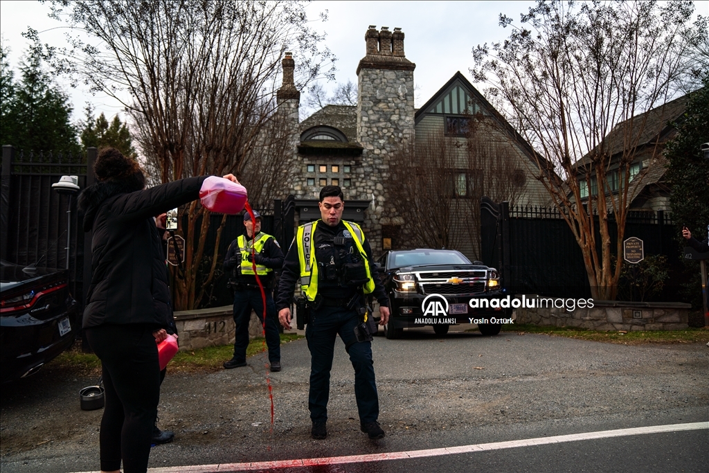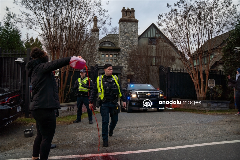 ABD’nin Virginia eyaletinde bir grup Filistin destekçisi aktivist, Dışişleri Bakanı Antony Blinken’in evinin önünde protesto düzenledi. Aktivistler, evinden ayrılan Blinken’in aracına kırmızı renkli boya fırlattı. ( Yasin Öztürk - Anadolu Ajansı )
