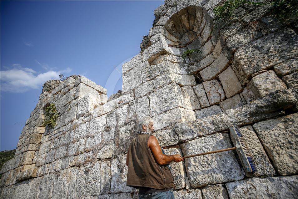 Antalya'da bir dönem keçilerini otlattığı arazide kazılar başlayınca bekçilik yapıp çalışmalara katılan Mustafa Keskin, şimdilerde ise turistlere antik kentin tarihi ile ilgili rehberlik yapıyor.