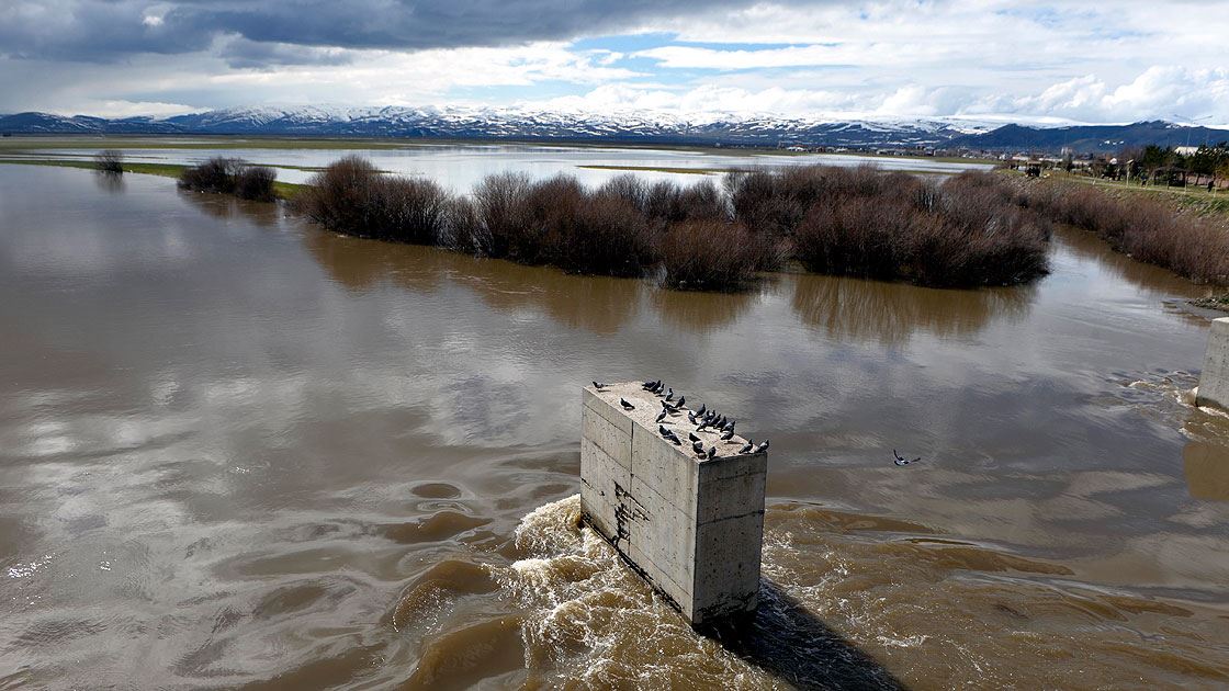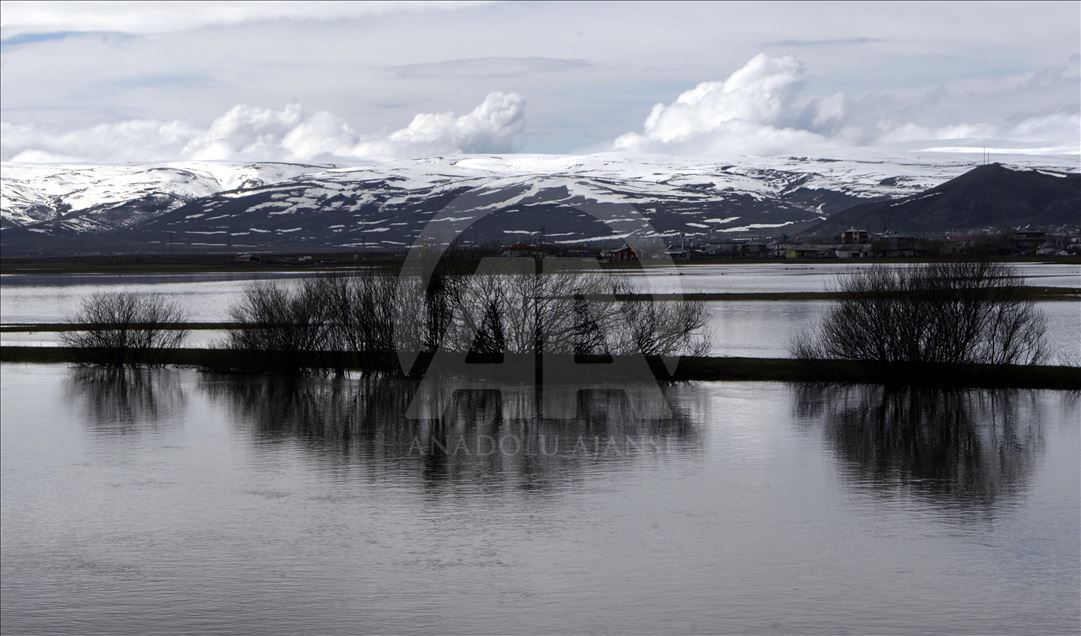 Ardahan kent merkezinden geçen Kura Nehrin sağanak ve kar birikintilerinin erimesiyle taşması sonucu Ardahan Ovası'nın bir bölümü adeta göle döndü.
