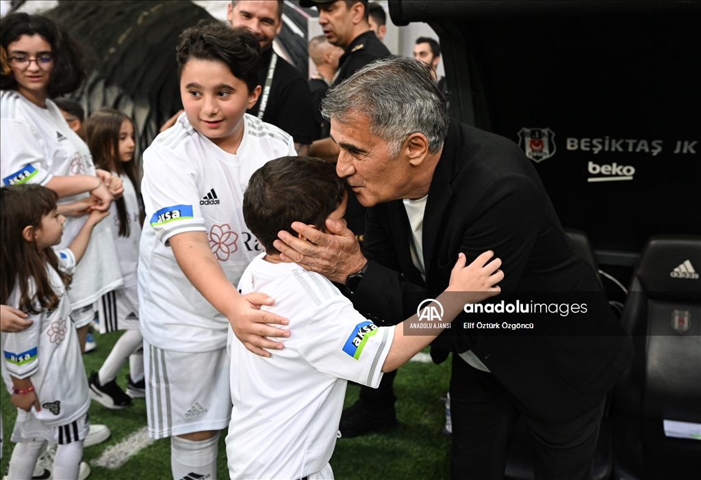 Spor Toto Süper Lig'de 2022-2023 sezonu 38'inci ve son haftasında Beşiktaş ile Arabam.com Konyaspor, Vodafone Park'ta karşılaştı. Seremoniye katılan bazı çocuklar, karşılaşma öncesinde Beşiktaş Teknik Direktörü Şenol Güneş ile selamlaştı. ( Elif Öztürk Özgöncü - Anadolu Ajansı )Elif Öztürk Özgöncü