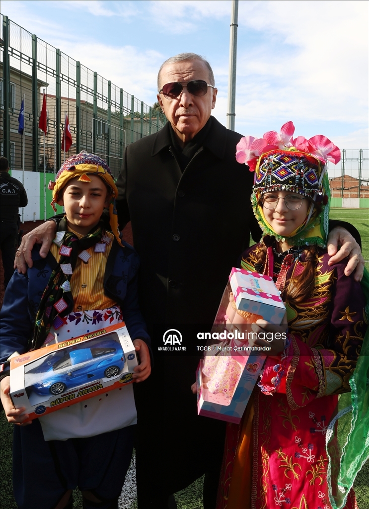 Cumhurbaşkanı Recep Tayyip Erdoğan, çeşitli programlara katılmak üzere Bursa'ya geldi. Cumhurbaşkanı Erdoğan, kendisini karşılayan yöresel kıyafetli çocuklara oyuncak hediye etti. ( TCCB / Murat Çetinmühürdar - Anadolu Ajansı )TCCB / Murat Çetinmühürdar