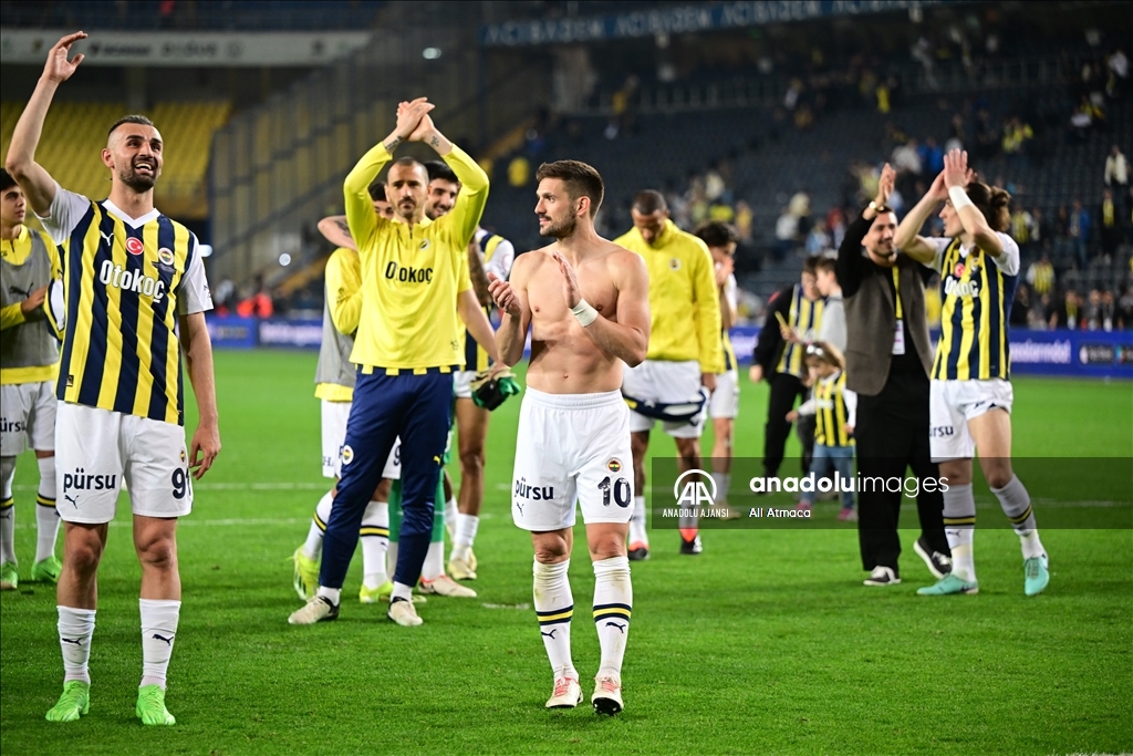 Trendyol Süper Lig'in 31. haftasında Fenerbahçe ile Yukatel Adana Demirspor takımları, Ülker Stadı’nda karşılaştı. Karşılaşmayı 4-2 kazanan Fenerbahçeli oyuncular taraftarları selamladı. ( Ali Atmaca - Anadolu Ajansı )Ali Atmaca