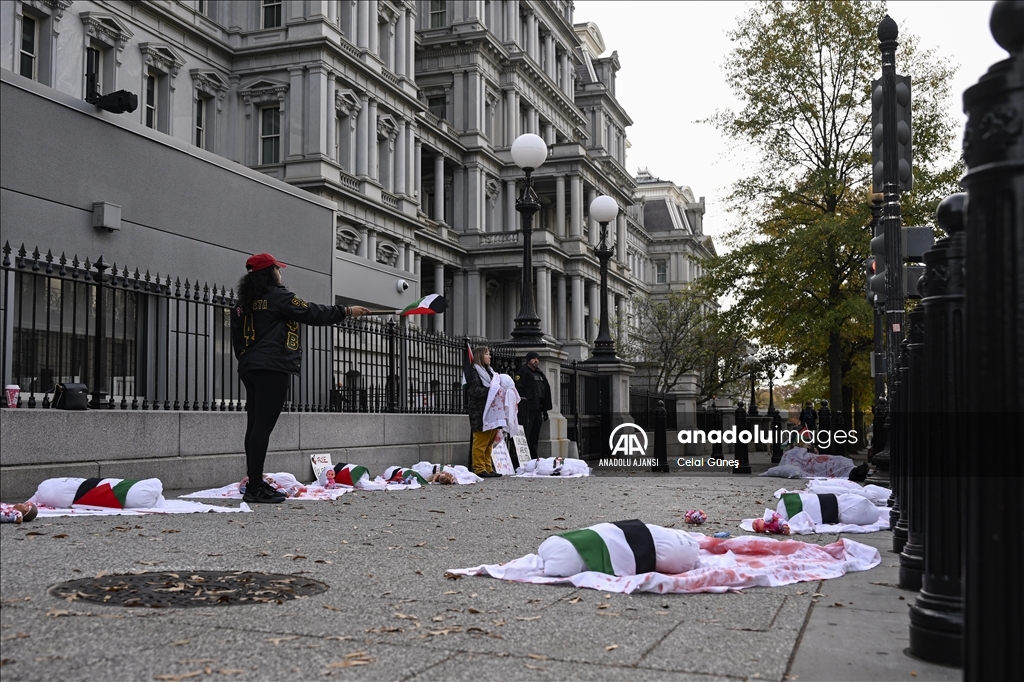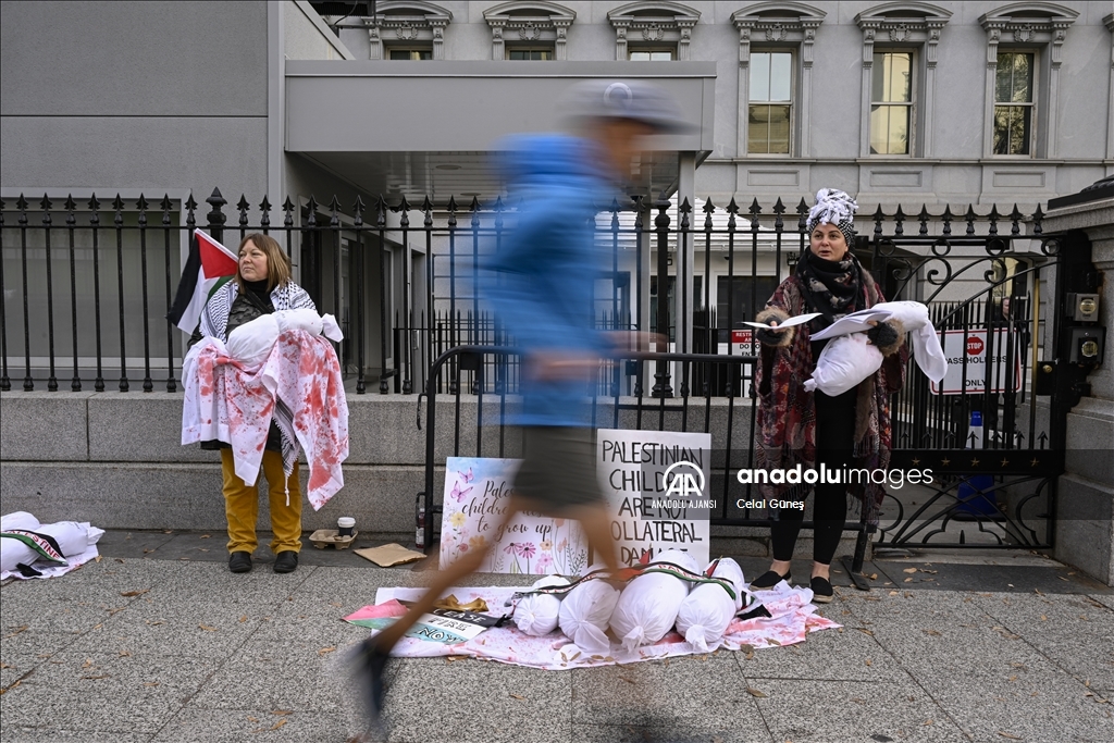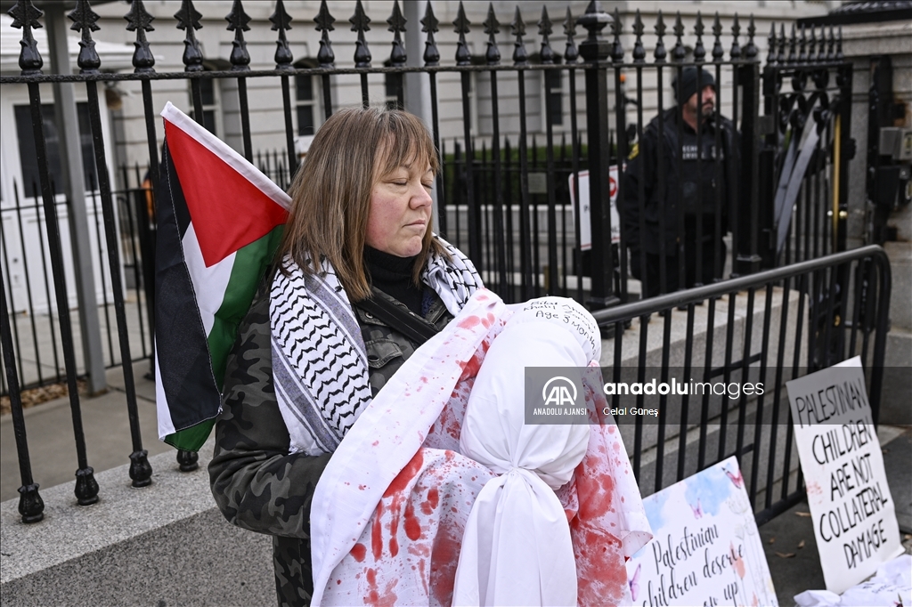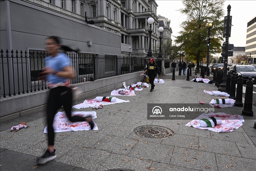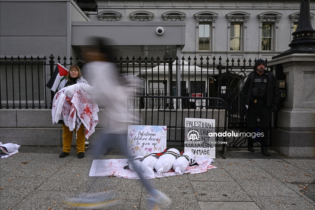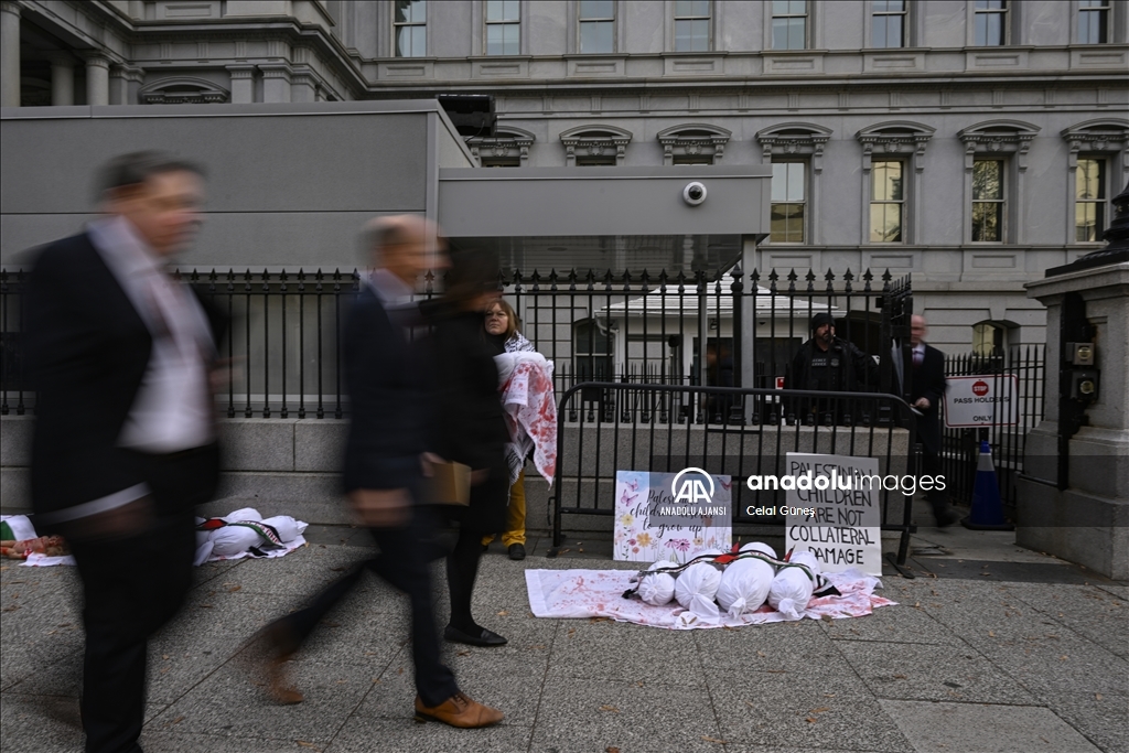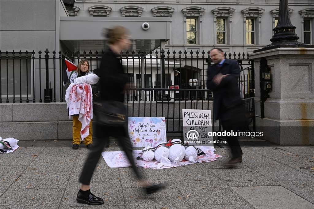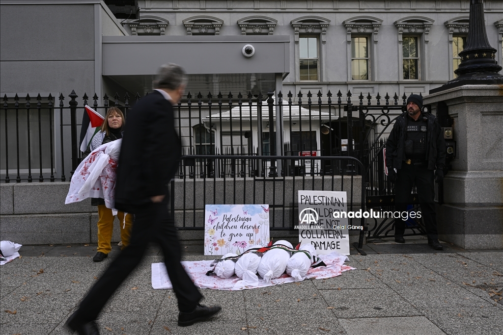 ABD’nin başkenti Washington'da bulunan Beyaz Saray çevresinde toplanan çok sayıda kişi, Filistin'e destek gösterisi düzenledi. Göstericiler, kefenlenmiş sembolik çocuk cenazesi dizerek İsrail'in Gazze'ye yönelik saldırılarını protesto etti. ( Celal Güneş - Anadolu Ajansı )Celal Güneş