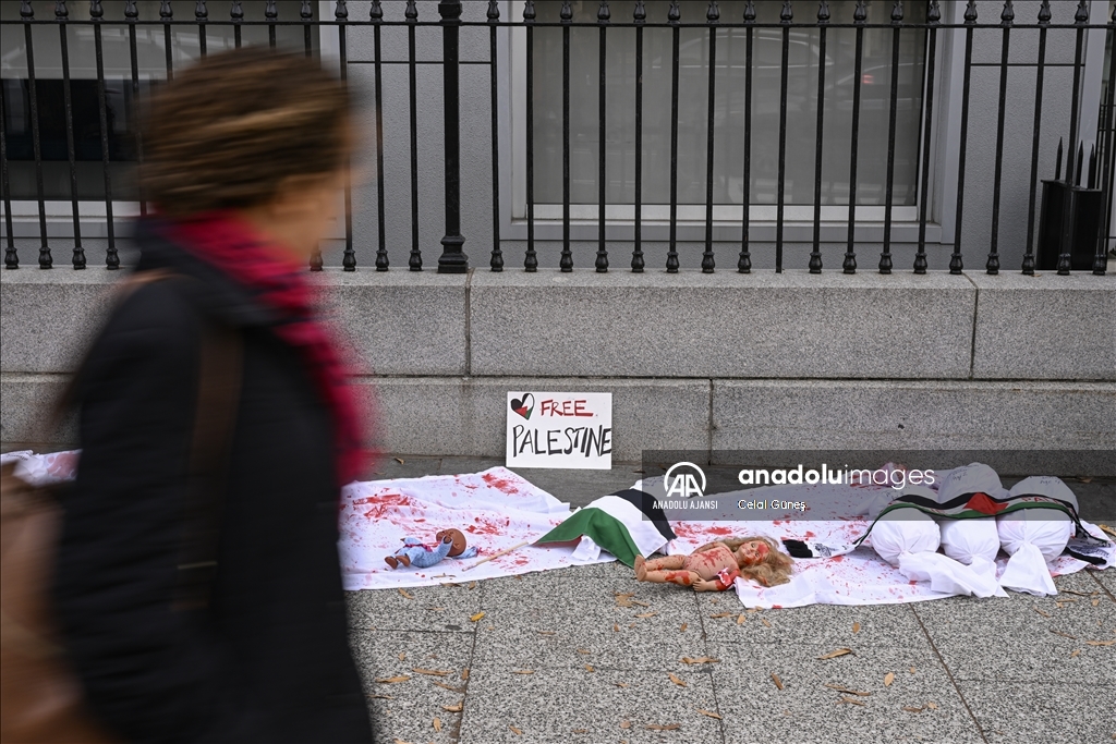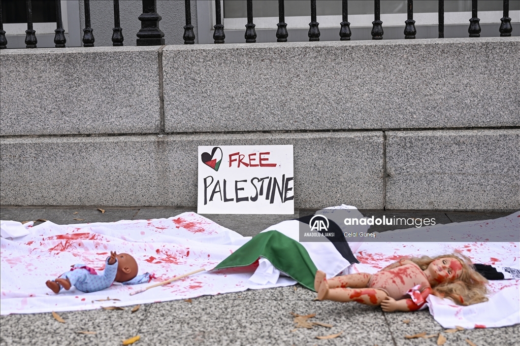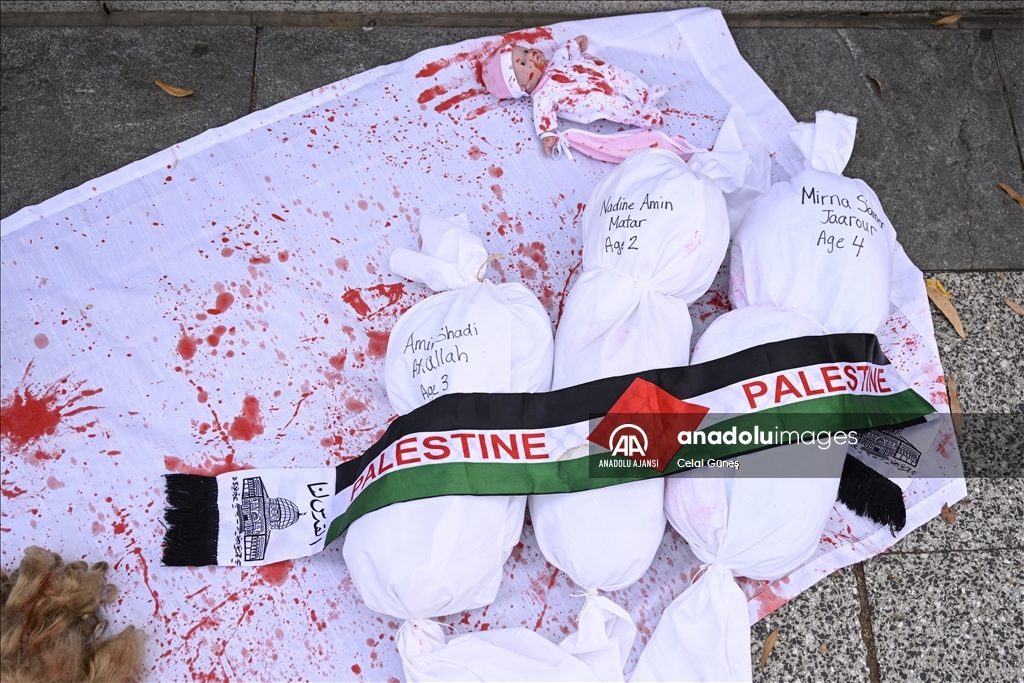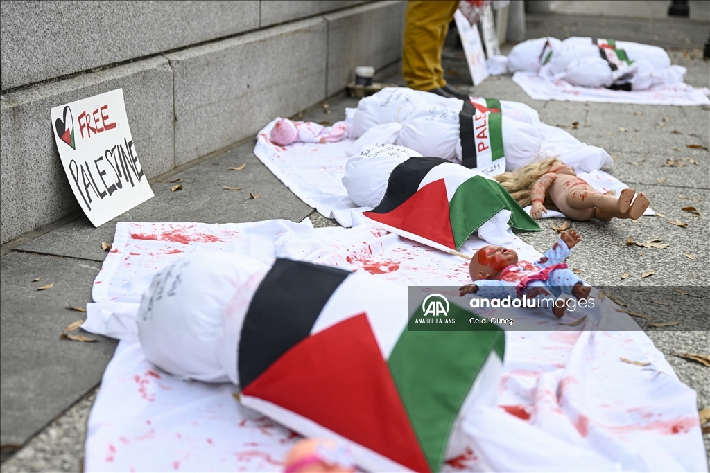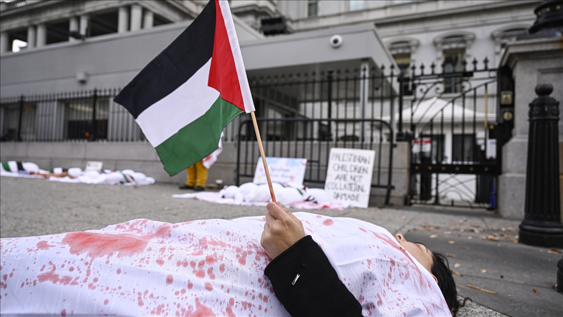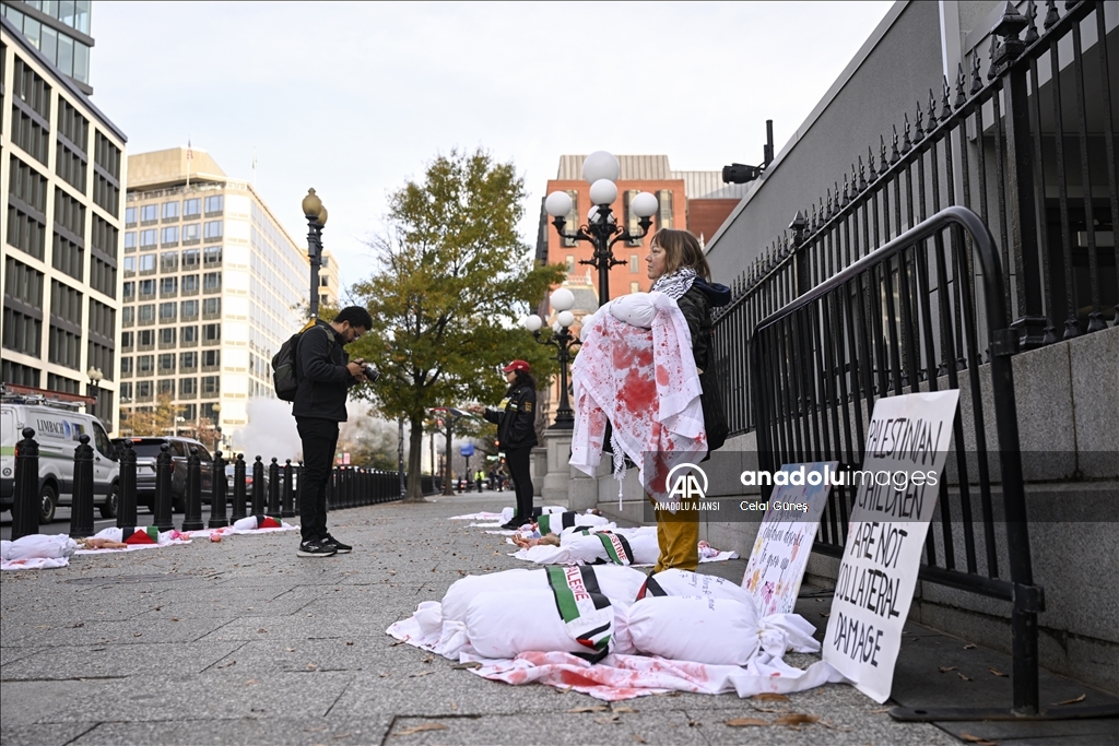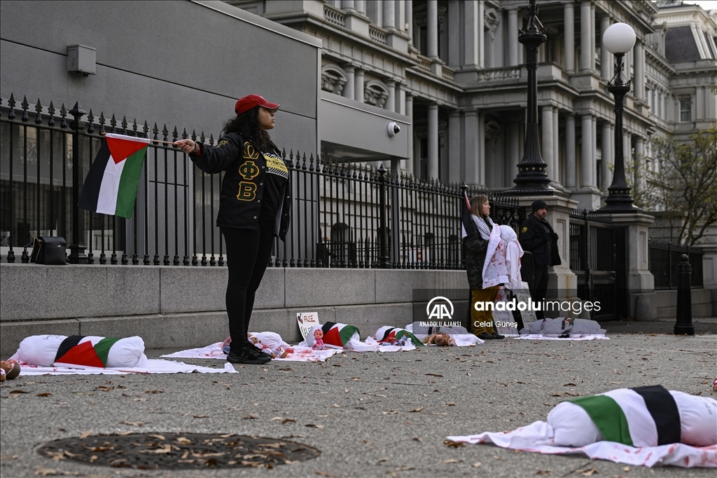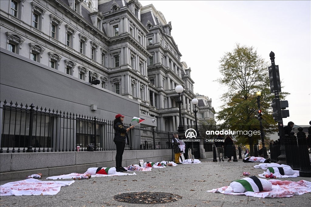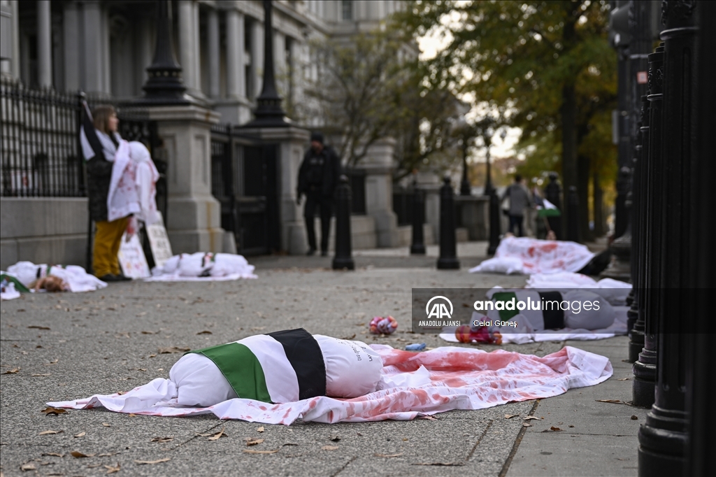 ABD’nin başkenti Washington'da bulunan Beyaz Saray çevresinde toplanan çok sayıda kişi, Filistin'e destek gösterisi düzenledi. Göstericiler, kefenlenmiş sembolik çocuk cenazesi dizerek İsrail'in Gazze'ye yönelik saldırılarını protesto etti. ( Celal Güneş - Anadolu Ajansı )Celal Güneş