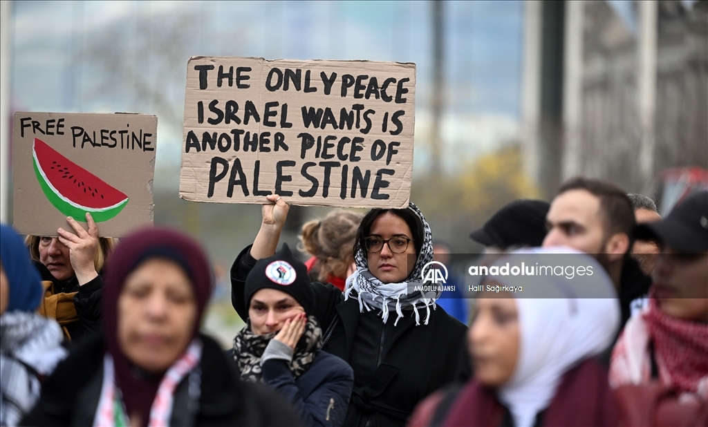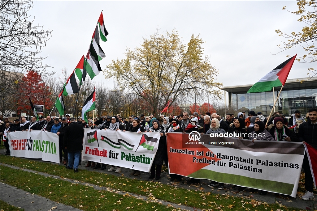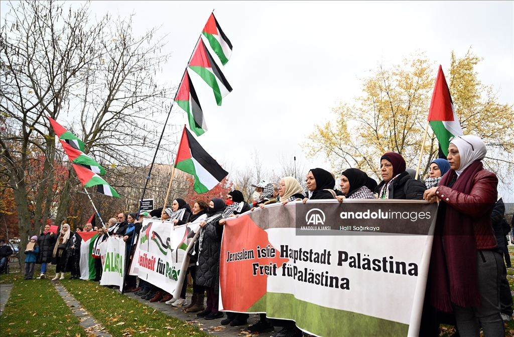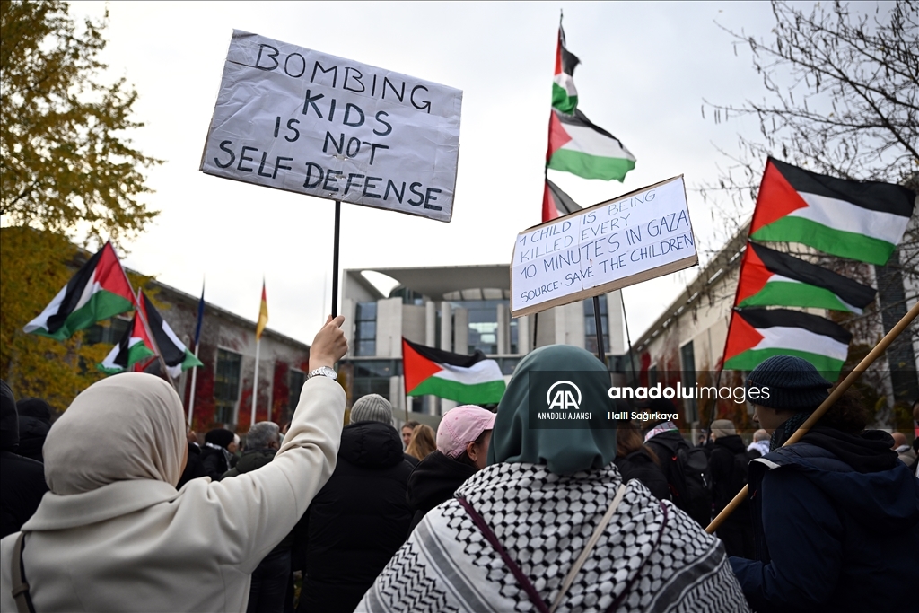 Almanya’nın başkenti Berlin’de Filistin’e destek gösterisi düzenledi. İsrail’in Gazze’ye yönelik saldırılarını protesto etmek ve Gazze’deki savaşın durdurulması talebiyle çok sayıda kişi Başbakanlık Binasının önünde toplandı.