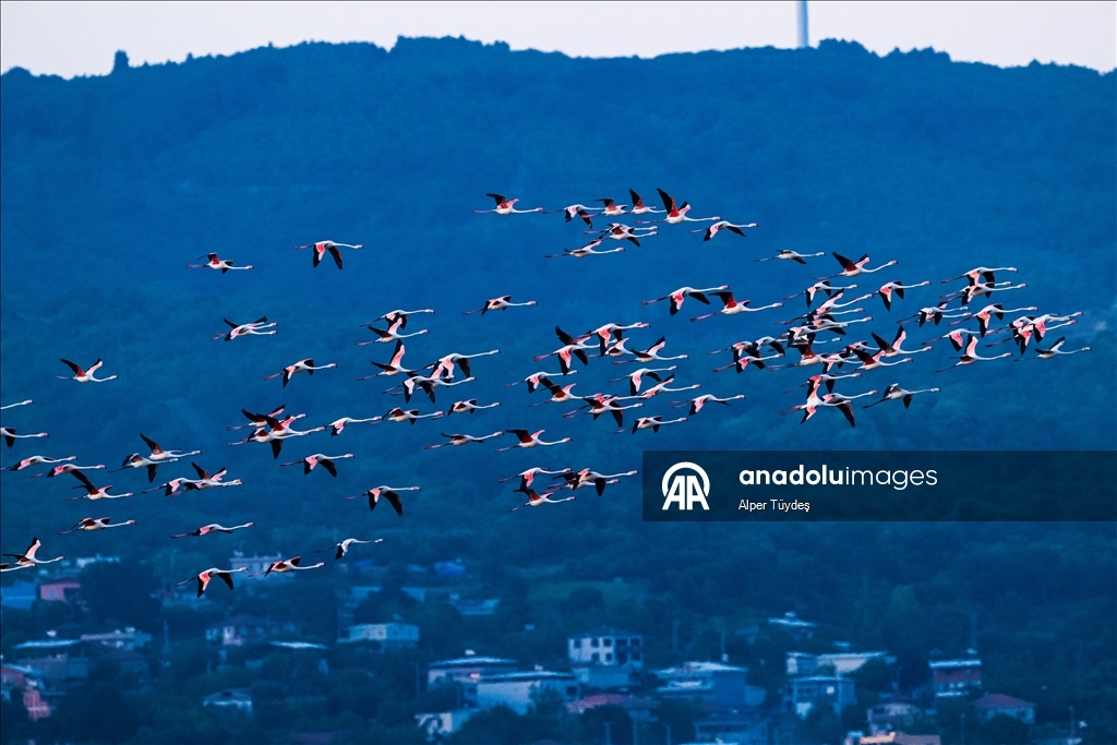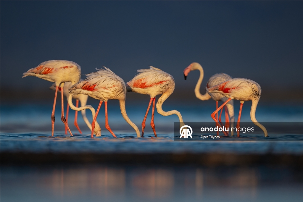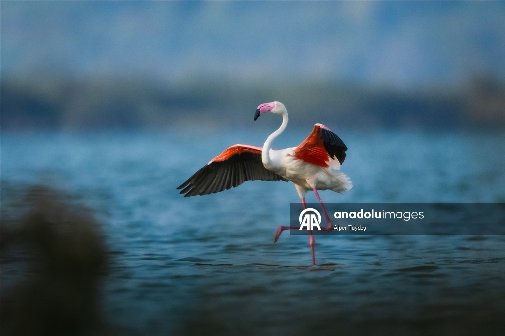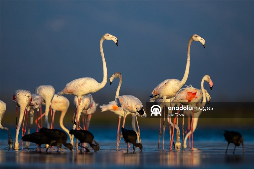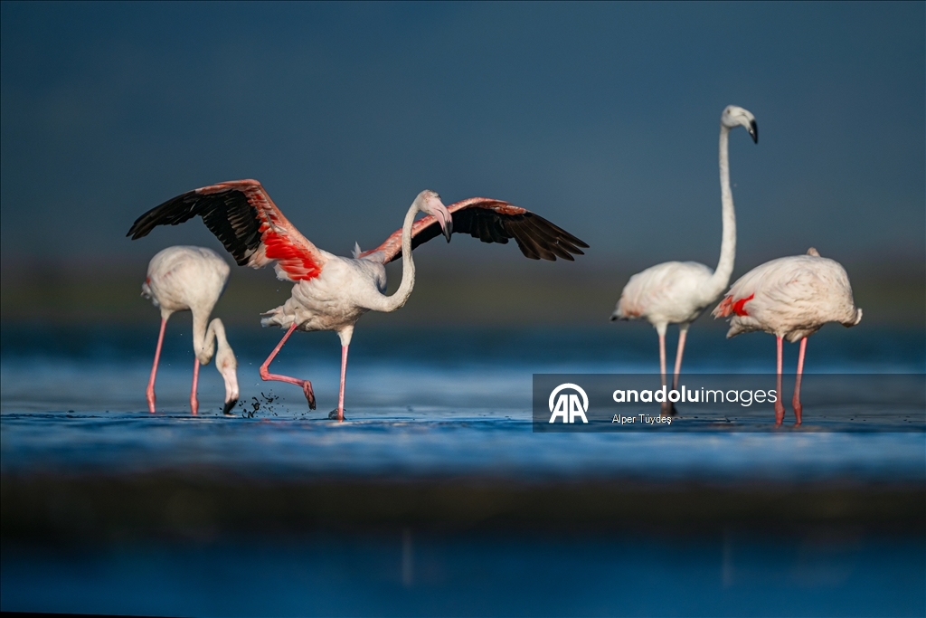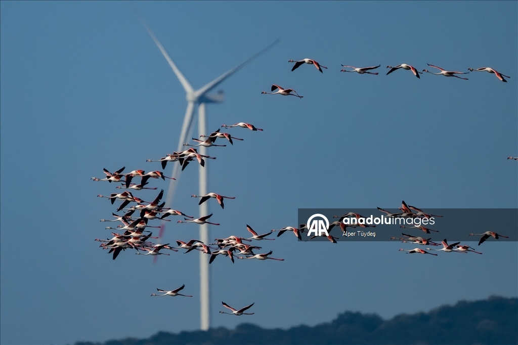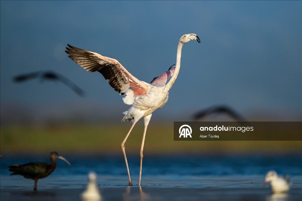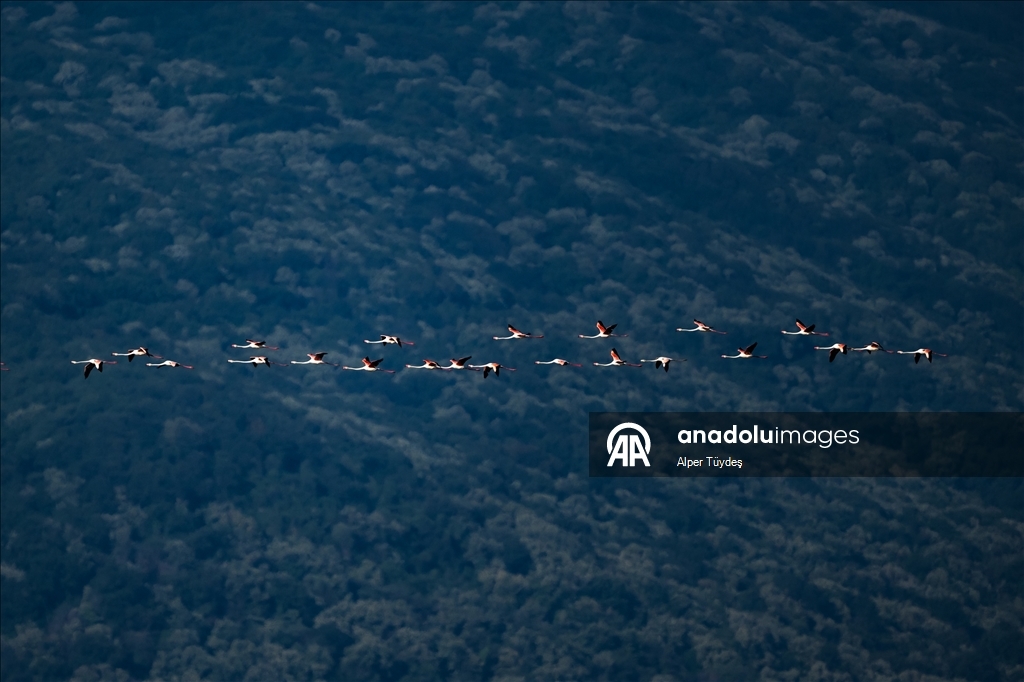 Her yıl kışlamak için deltaya gelen flamingolar, bataklık alanlarda beslenerek göç yolculuklarına burada devam ediyor. ( Alper Tüydeş - Anadolu Ajansı )