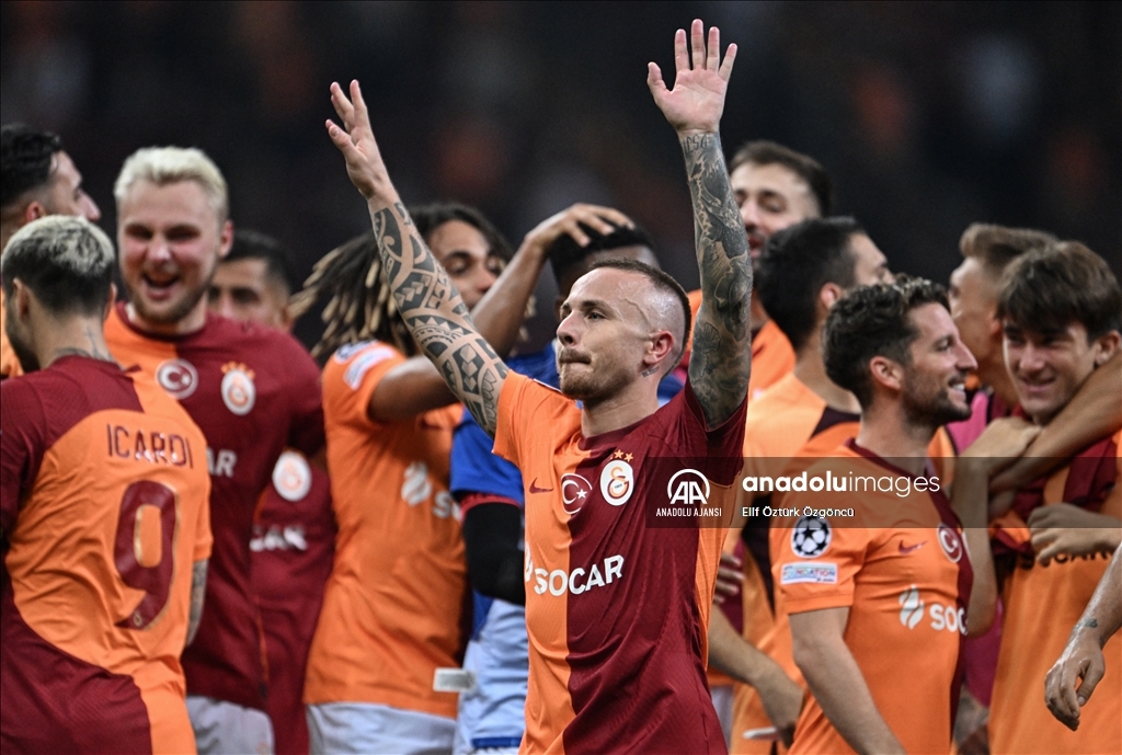 UEFA Şampiyonalar Ligi play-off turu 2. maçında Galatasaray ile Molde, Rams Park'ta karşılaştı. Galatasaray’ın ikinci golünü atan Angelino, karşılaşma sonunda tribünleri selamladı. ( Elif Öztürk Özgöncü - Anadolu Ajansı )Elif Öztürk Özgöncü