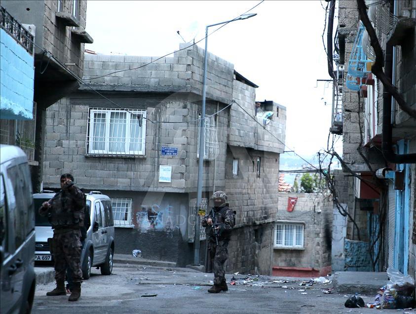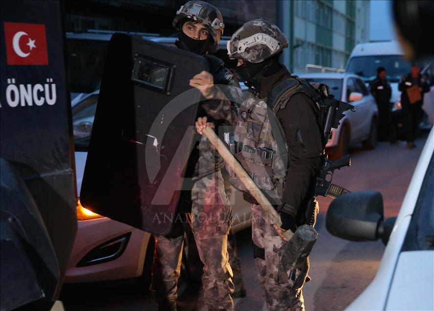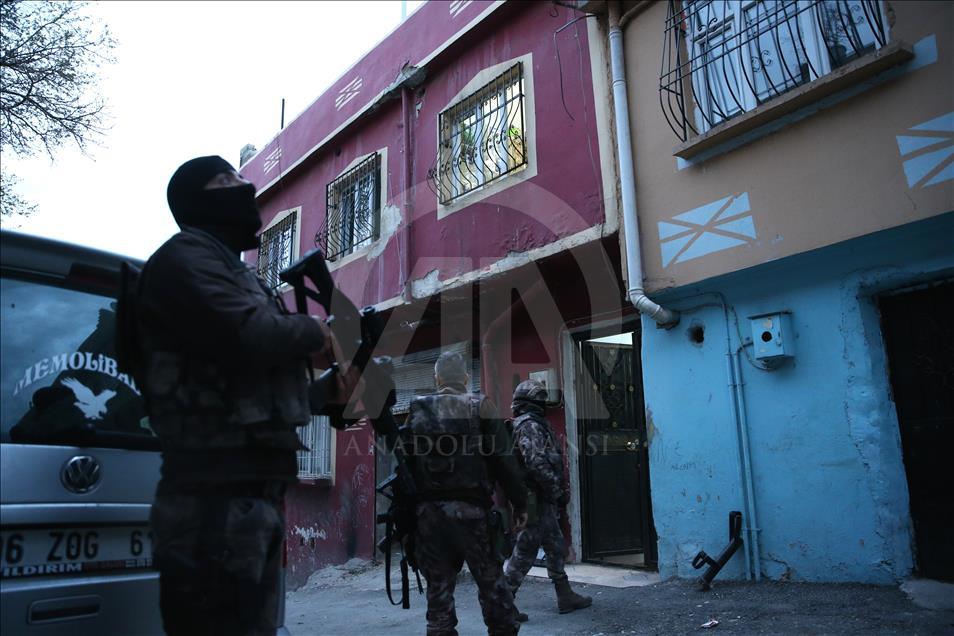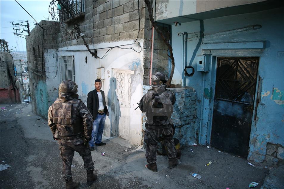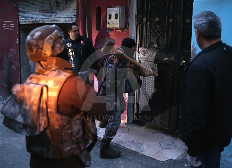 Gaziantep Emniyet Müdürlüğü Uyuşturucuyla Mücadele Şubesi ekipleri Şehitkamil ilçesi Hacıbaba Mahallesi'nde önceden belirlenen 15 adrese eş zamanlı operasyon yaptı. Uyuşturucu satıcılarına yönelik 250 polisin katılımıyla gerçekleşen operasyonda bazı adreslerin kapıları "koçbaşı" ve balyoz kullanılarak açıldı. 3 kişi gözaltına alındı. ( Ensar Özdemir - Anadolu Ajansı )Ensar Özdemir