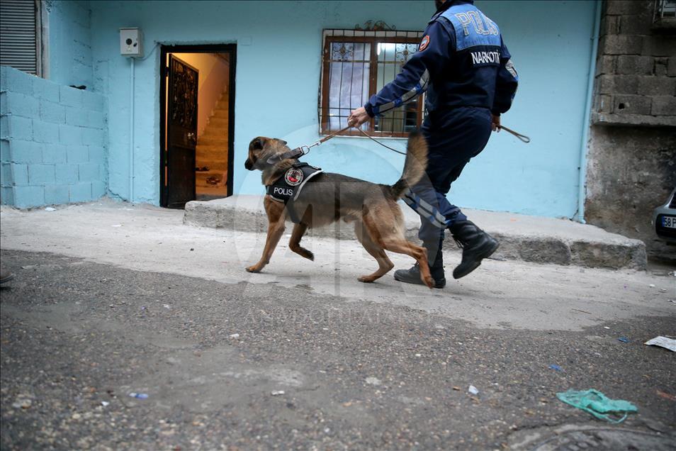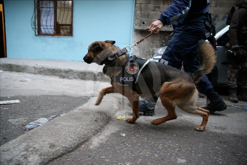 Gaziantep Emniyet Müdürlüğü Uyuşturucuyla Mücadele Şubesi ekipleri Şehitkamil ilçesi Hacıbaba Mahallesi'nde önceden belirlenen 15 adrese eş zamanlı operasyon yaptı. Uyuşturucu satıcılarına yönelik 250 polisin katılımıyla gerçekleşen operasyonda bazı adreslerin kapıları "koçbaşı" ve balyoz kullanılarak açıldı. Narkotik köpeği "Alex"in de kullanıldığı operasyonda evlerde arama yapan ekipler, 5 kilogram esrar, kurusıkı tabanca, hassas terazi, bıçak ve çok sayıda mermi ele geçirdi.