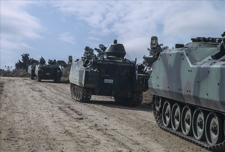 Türk Silahlı Kuvvetleri (TSK) İdlib'deki gözlem noktalarına zırhlı personel taşıyıcılarıyla (ZPT) komando sevk etti. Türkiye'nin farklı birliklerinden gönderilen ve içerisinde komandoların bulunduğu otobüsler Hatay'ın Reyhanlı ilçesine ulaştı. ( Cem Genco - Anadolu Ajansı )Cem Genco