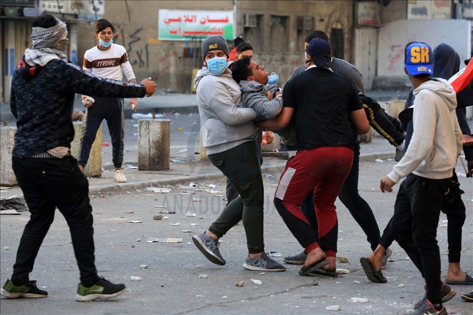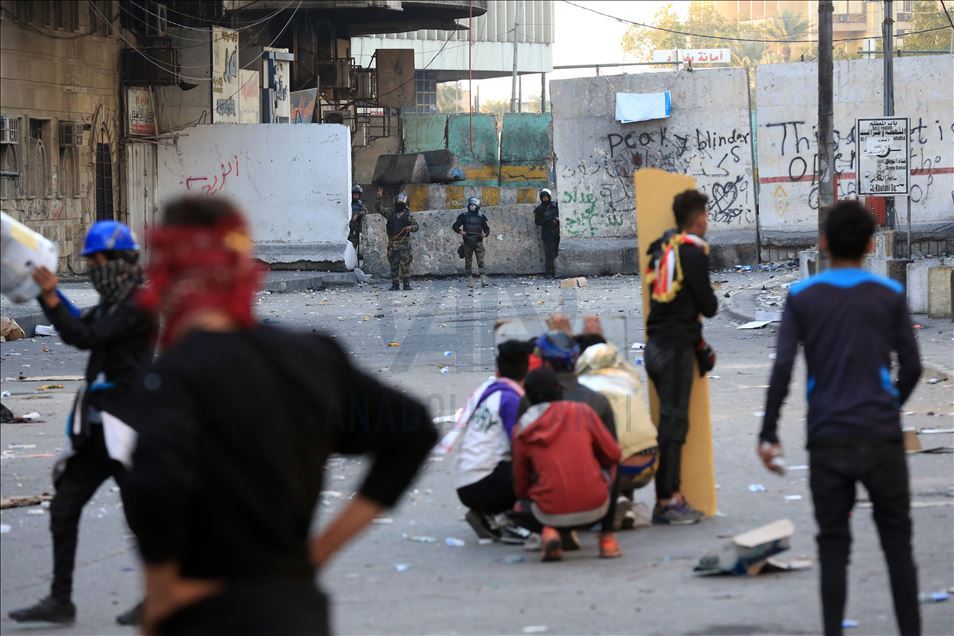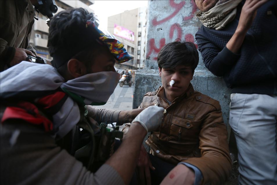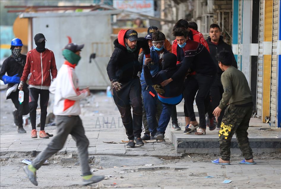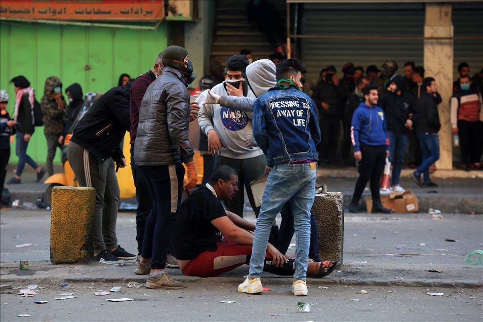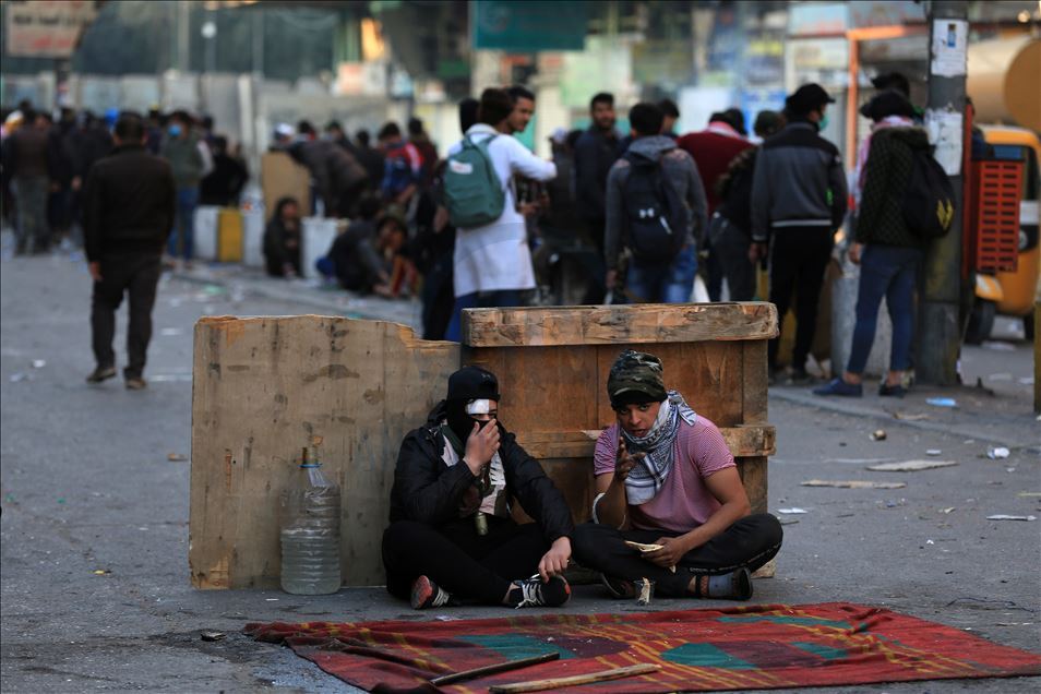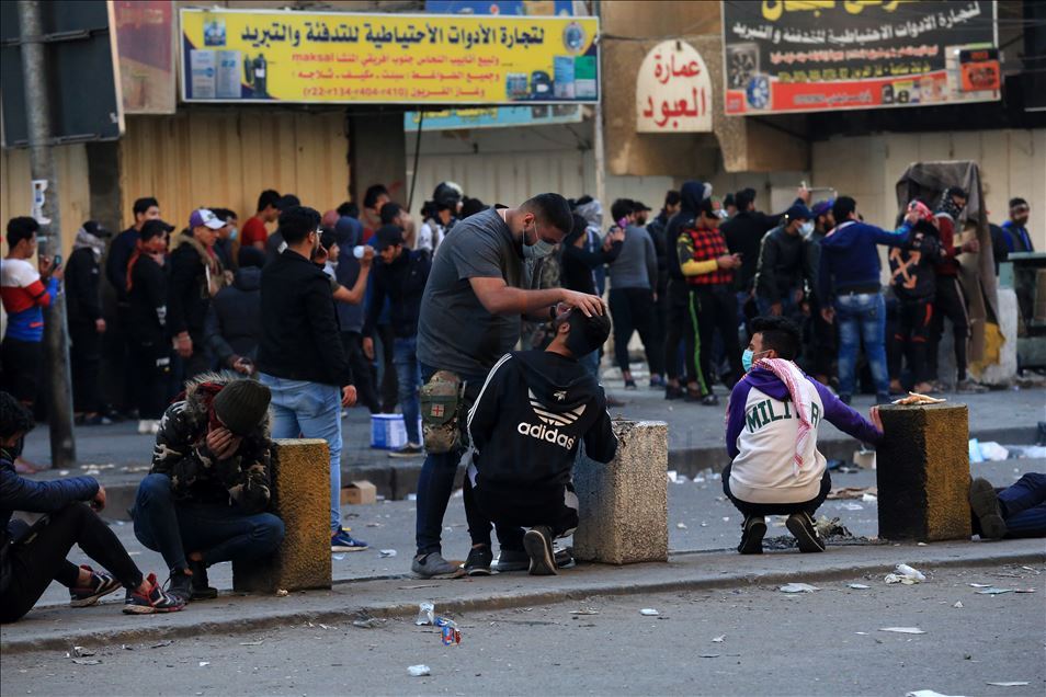 Irak'ın başkenti Bağdat'taki el Halani Meydanı'nda toplanan hükümet karşıtı eylemciler, protestolarını sürdürdü. Protestolar sırasında güvenlik güçleri ile göstericiler arasında gerginlik yaşandı. Güvenlik güçleriyle göstericiler arasında çıkan çatışmalarda yaralanan bir kişiye çevredekiler müdahale etti. ( Murtadha Al-Sudani - Anadolu Ajansı )Murtadha Al-Sudani