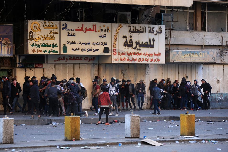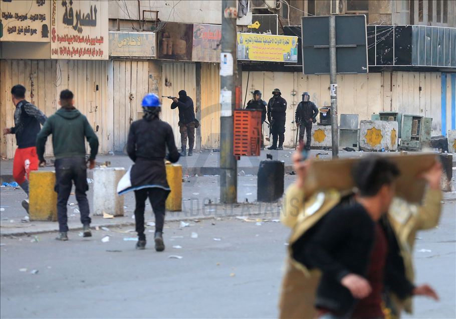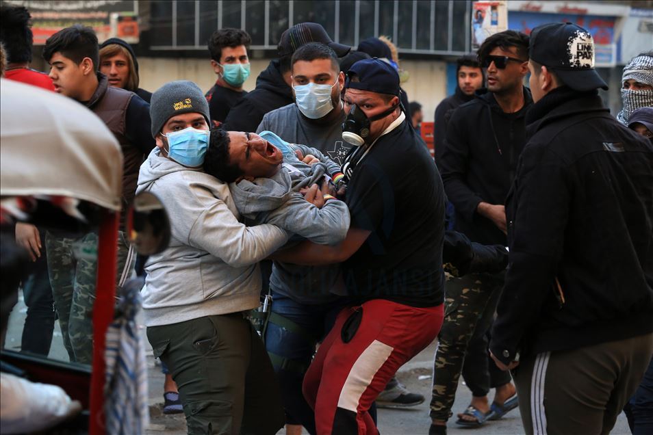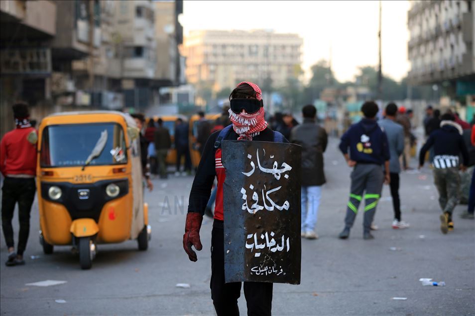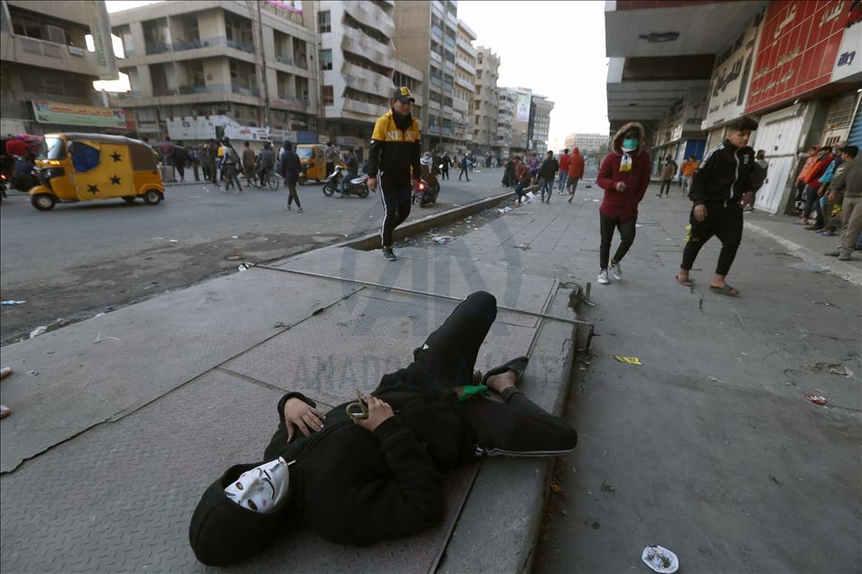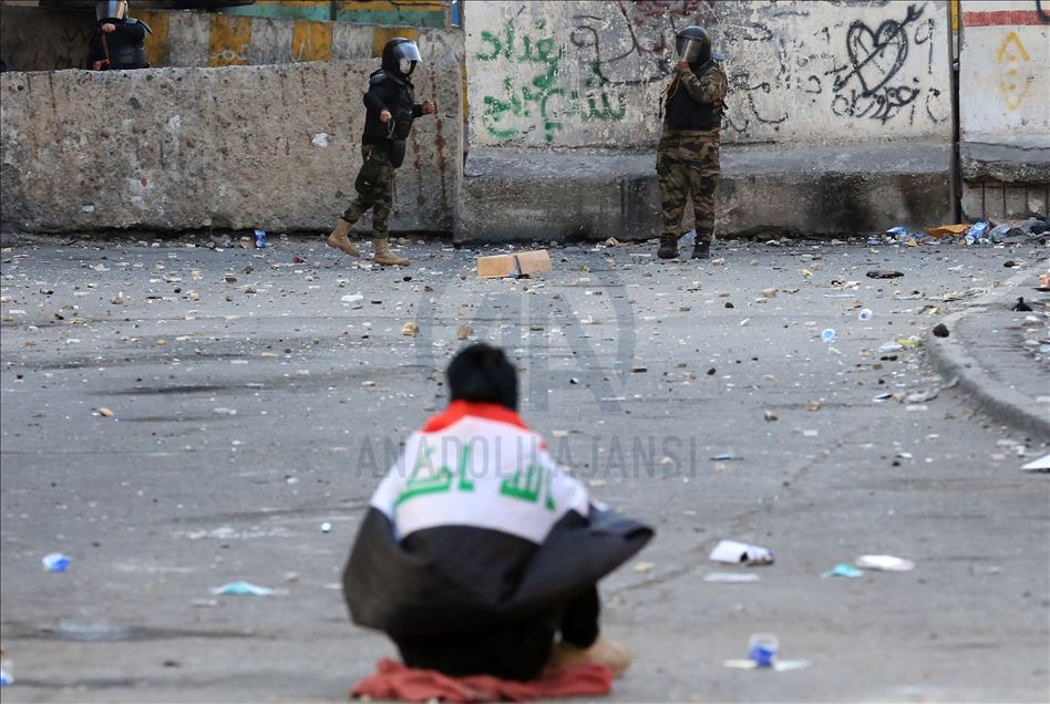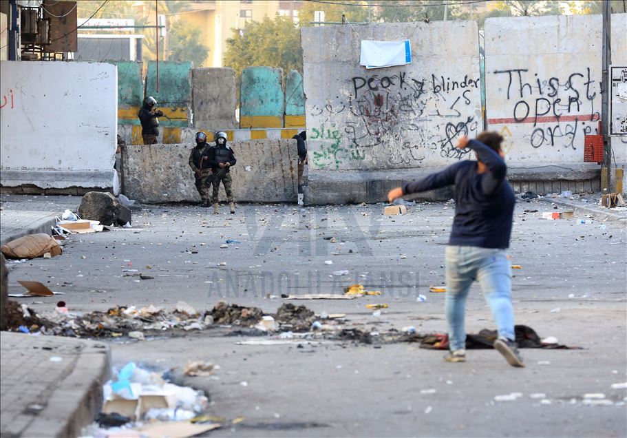Irak'ın başkenti Bağdat'taki el Halani Meydanı'nda toplanan hükümet karşıtı eylemciler, protestolarını sürdürdü. Protestolar sırasında güvenlik güçleri ile göstericiler arasında gerginlik yaşandı. Güvenlik güçleriyle göstericiler arasında çıkan çatışmalarda yaralanan bir kişiye çevredekiler müdahale etti. ( Murtadha Al-Sudani - Anadolu Ajansı )Murtadha Al-Sudani