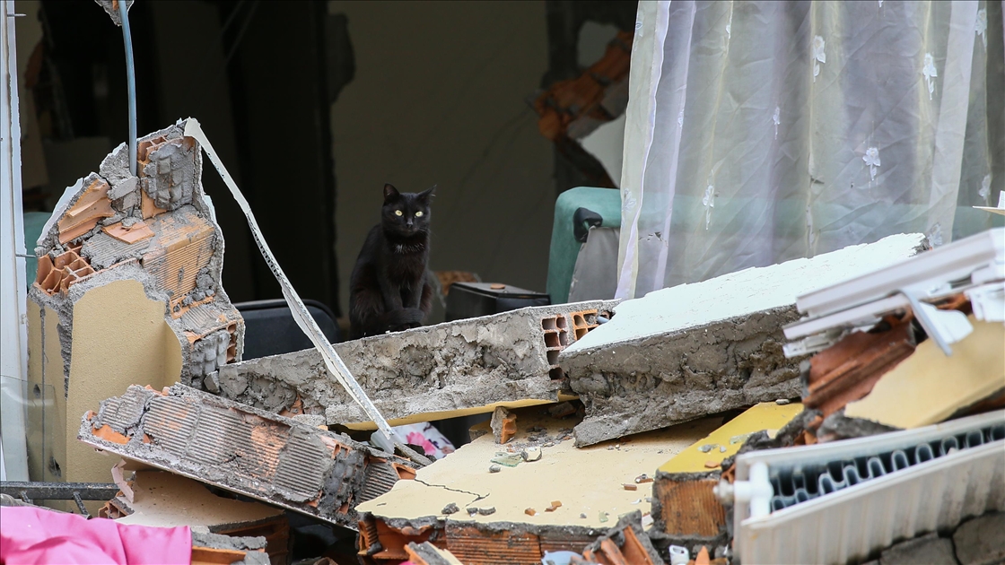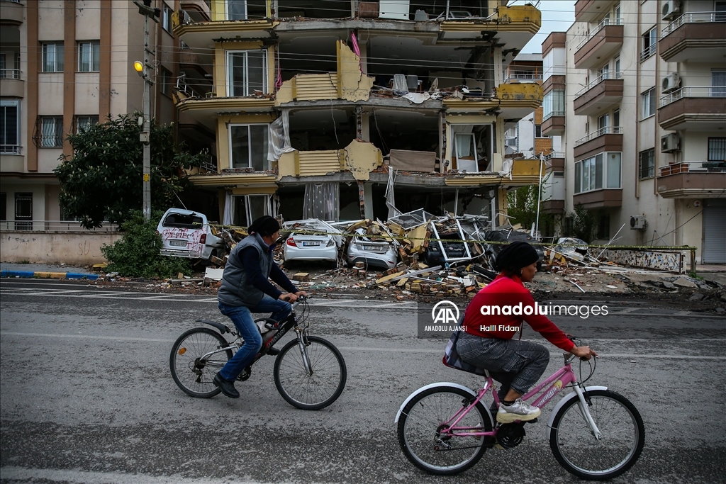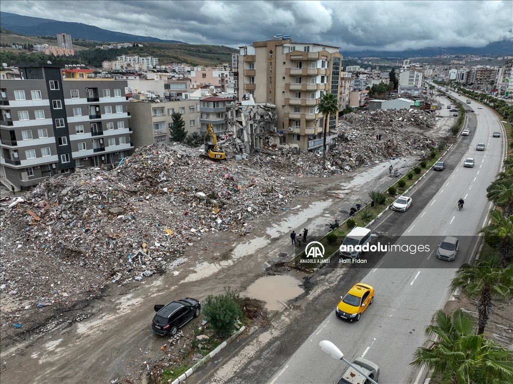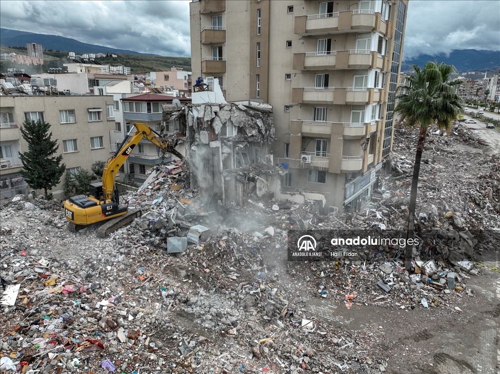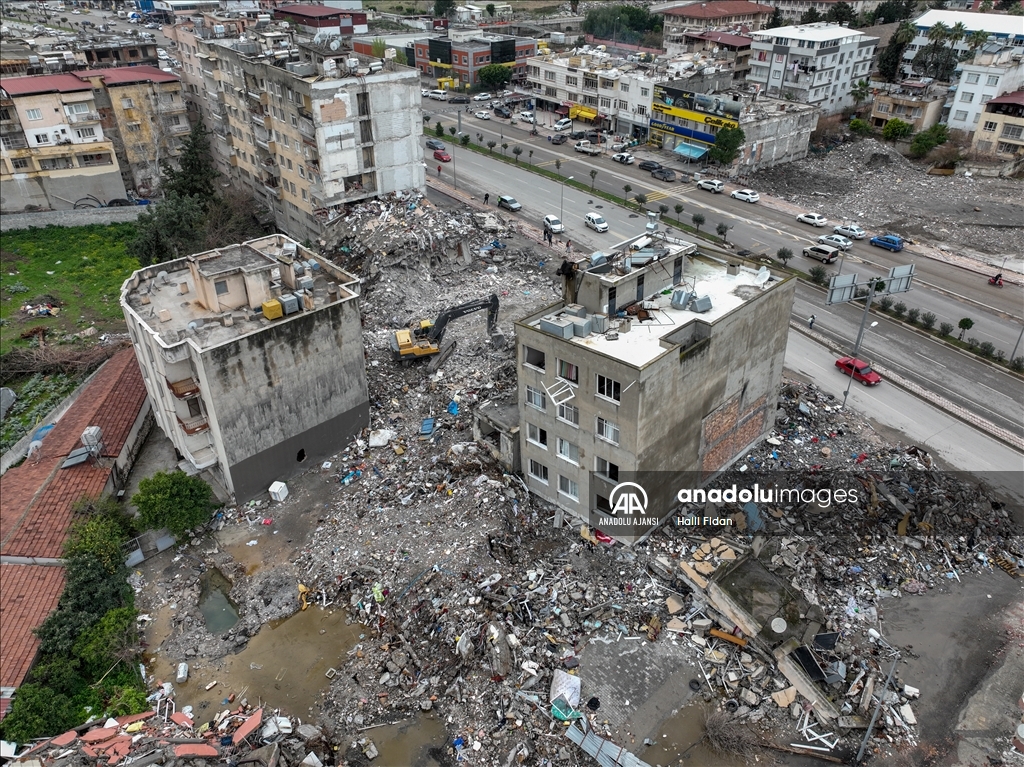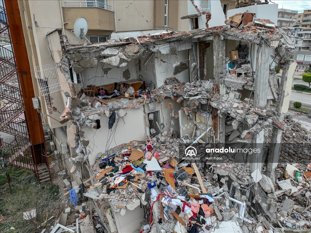 Kahramanmaraş merkezli 6 Şubat'taki depremlerden etkilenen Hatay'ın İskenderun ilçesinde ağır hasarlı binalardaki evler dronla görüntülendi.