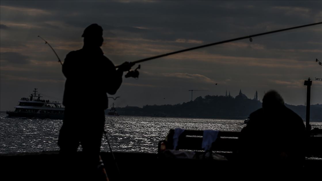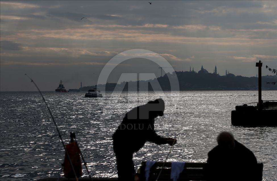 İstanbul'un gökyüzünü kaplayan bulutlardan süzülen güneş denize yansıdı. Beşiktaş sahilinde balık tutan olta balıkçılarının silüeti güzel görüntüler oluşturdu. ( Emrah Yorulmaz - Anadolu Ajansı )Emrah Yorulmaz