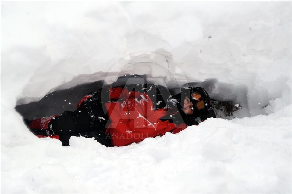 Jandarma Komando Özel Asayiş ve Kurtarma Tugay Komutanlığına bağlı Jandarma Arama Kurtarma Tabur Komutanlığı (JAK) timleri, kar örtüsü altındaki Ilgaz Dağı'nın 2 bin 300 metresinde arama, kurtarma ve hayatta kalma eğitimine tabi tutuluyor. Yurt içi ve yurt dışında meydana gelebilecek her türlü doğal ve insan kaynaklı afetler ile dağda, karda mağarada, kanyonlarda, su altında arama kurtarma faaliyeti icra eden JAK timleri, iki haftalık eğitim çalışmaları kapsamında teorik eğitimlerin ardından Ilgaz Dağı'nda yoğun kar ve tipi altında uygulamalı eğitimlerine başladı.