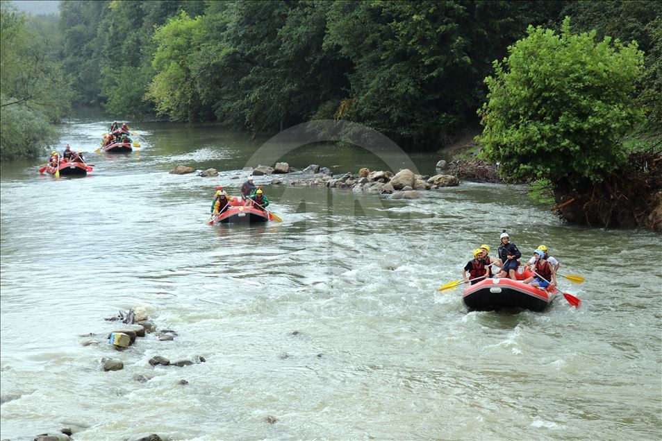 Düzce'de yaşanan sel felaketinden sonra Melen Çayı'nda yapılan temizlik çalışmasının ardından rafting turları yeniden başladı. ( Tayyib Hoşbaş - Anadolu Ajansı )Tayyib Hoşbaş