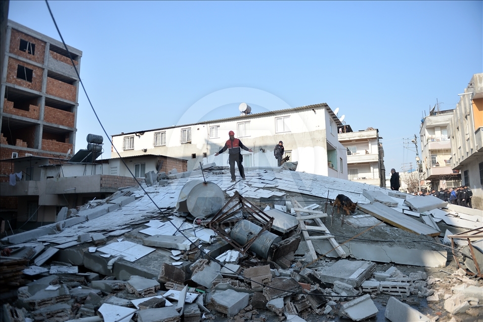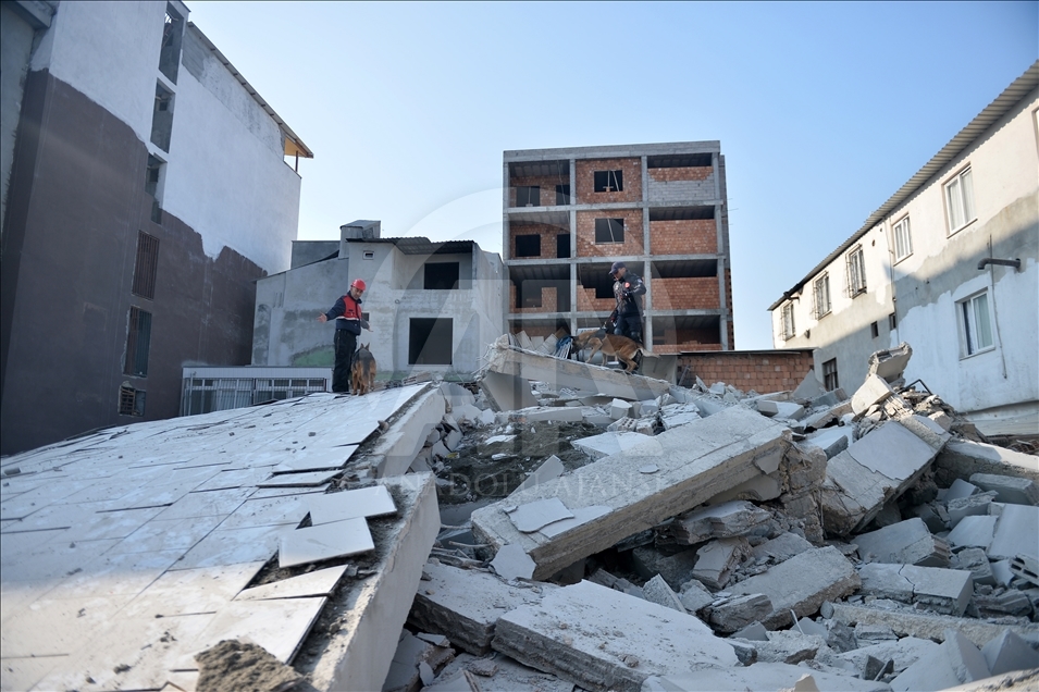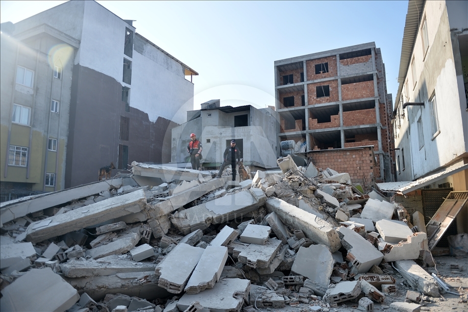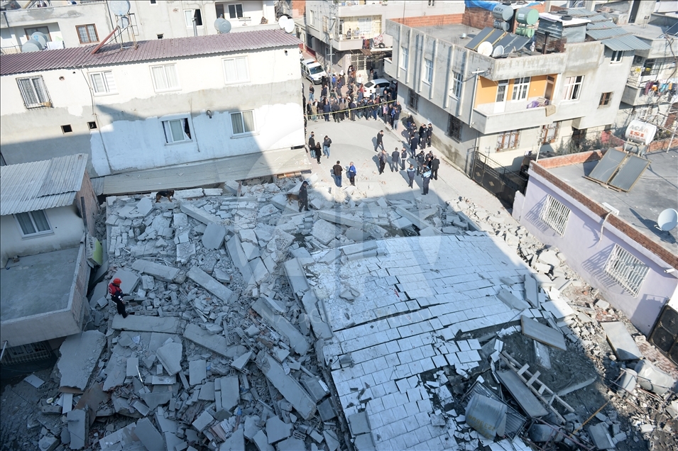 Mersin'in merkez Toroslar ilçesinde gece saatlerinde kolonlarından ses gelmesi üzerine boşaltılan bina çöktü. Ekipler, enkazda çalışma yaptı. ( Sezgin Pancar - Anadolu Ajansı )Sezgin Pancar