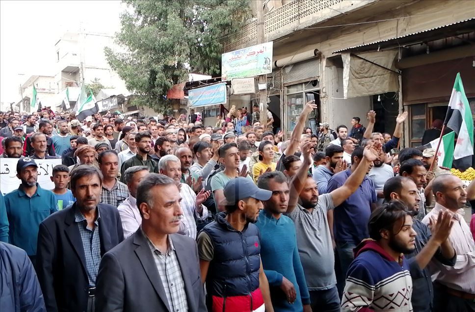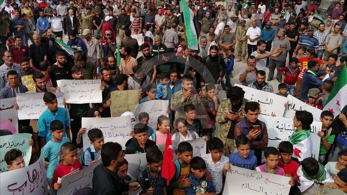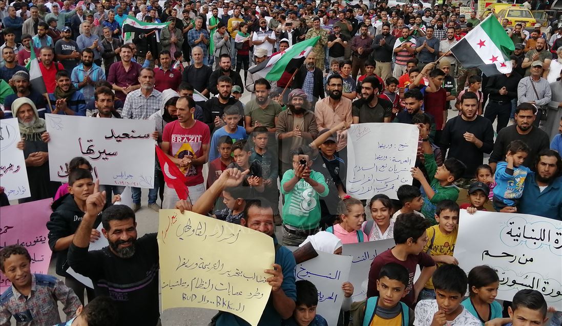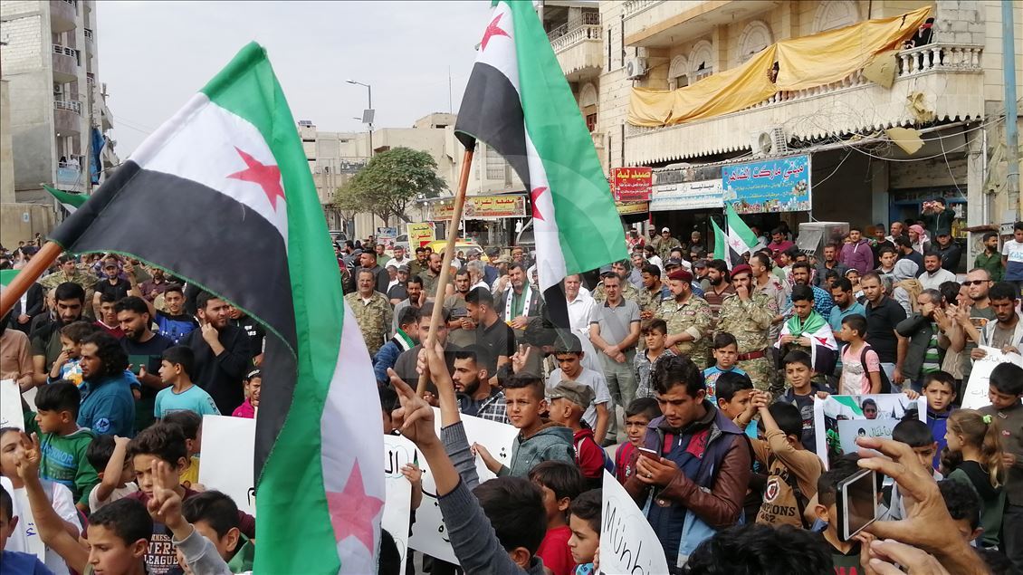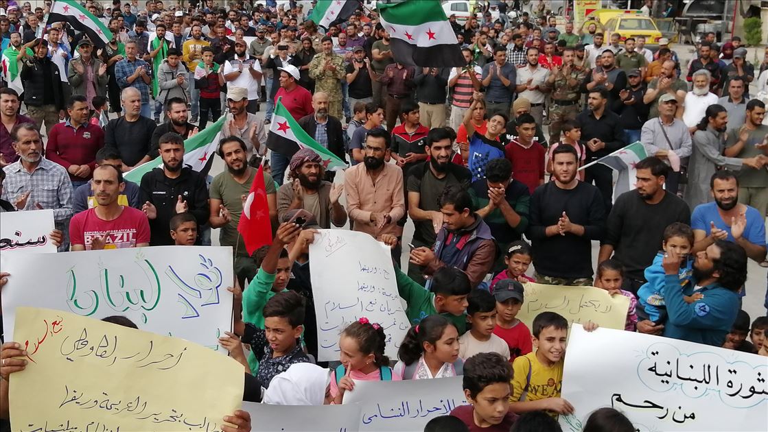 Münbiç'te yaşayanlar Esed rejimini protesto etti