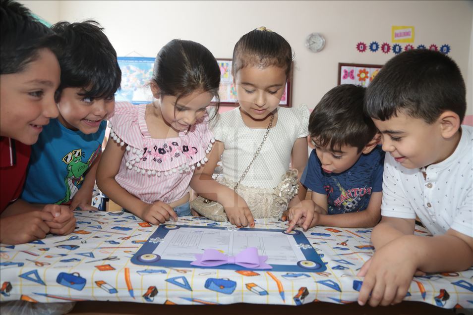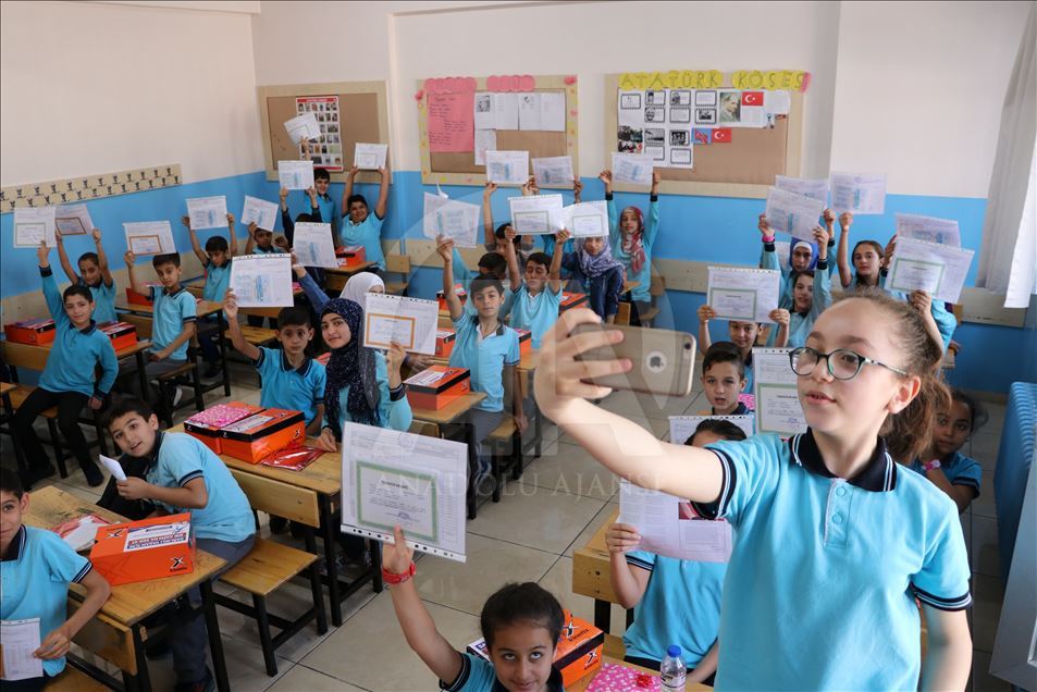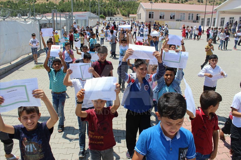 Türkiye'de en çok Suriyeliye ev sahipliği yapan kentlerin başında gelen Şanlıurfa, Kilis ve Gaziantep'te misafir öğrenciler karnelerini alarak tatile çıktı. Gaziantep'teki Nizip Geçici Barınma Merkezi'nde eğitim gören yaklaşık 450 öğrenci karne sevinci yaşadı. Başarılı öğrencilere kamp yönetimi tarafından karneleri ile çeşitli hediyeler de verildi. ( İrfan Aydoğdu - Anadolu Ajansı )İrfan Aydoğdu