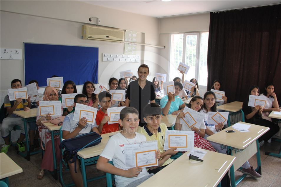 Adana, Osmaniye, Hatay ve Mersin'de 2018-2019 eğitim öğretim yılının sona ermesiyle öğrenciler karne almanın heyecanını yaşadı. Hatay'da da Türk ve Suriyeli öğrenciler, karne sevinci yaşadı.