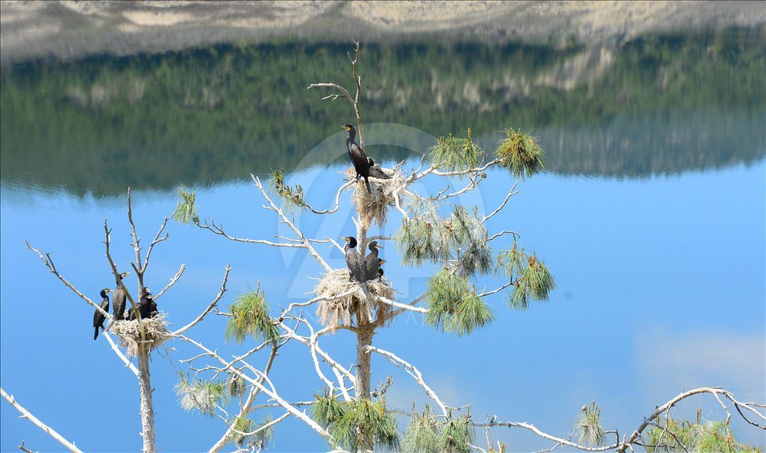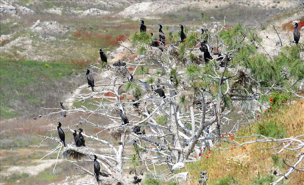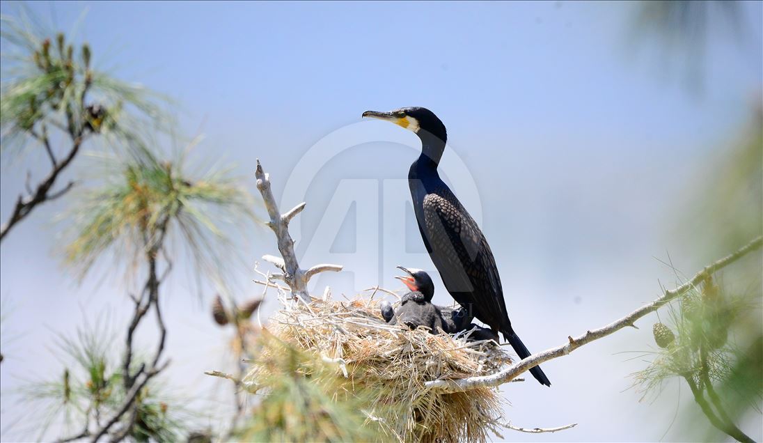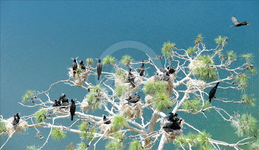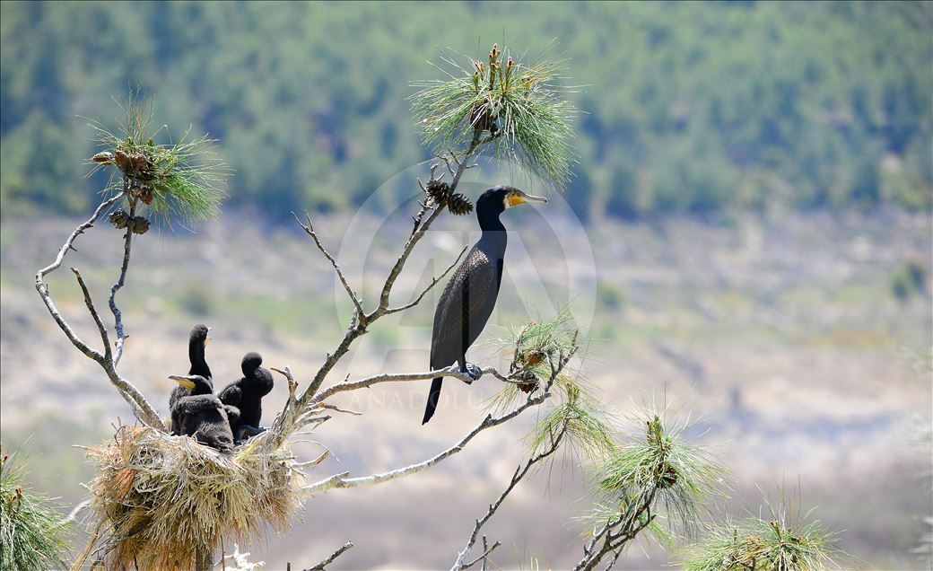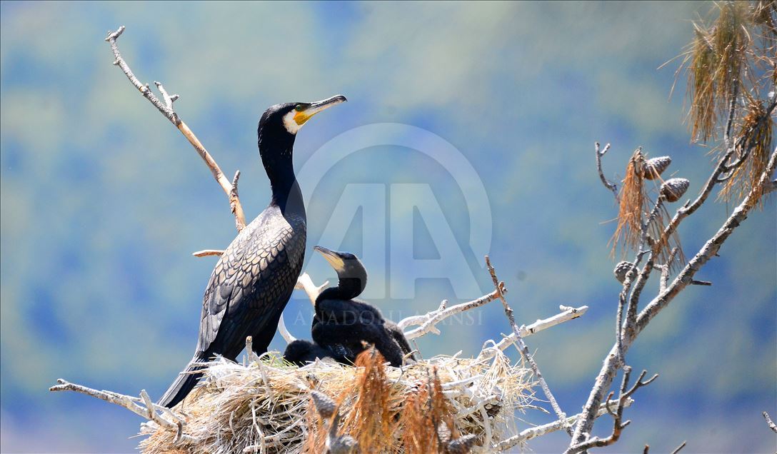 Uşak'ın Ulubey ilçesindeki Adıgüzeller Barajı su havzasında gri balıkçıl ve karabatak üreme noktasında sürdürülen etkin koruma yöntemleriyle bu yıl rekor kuş sayısına ulaşıldı.