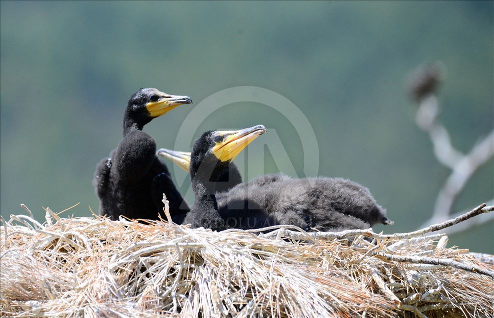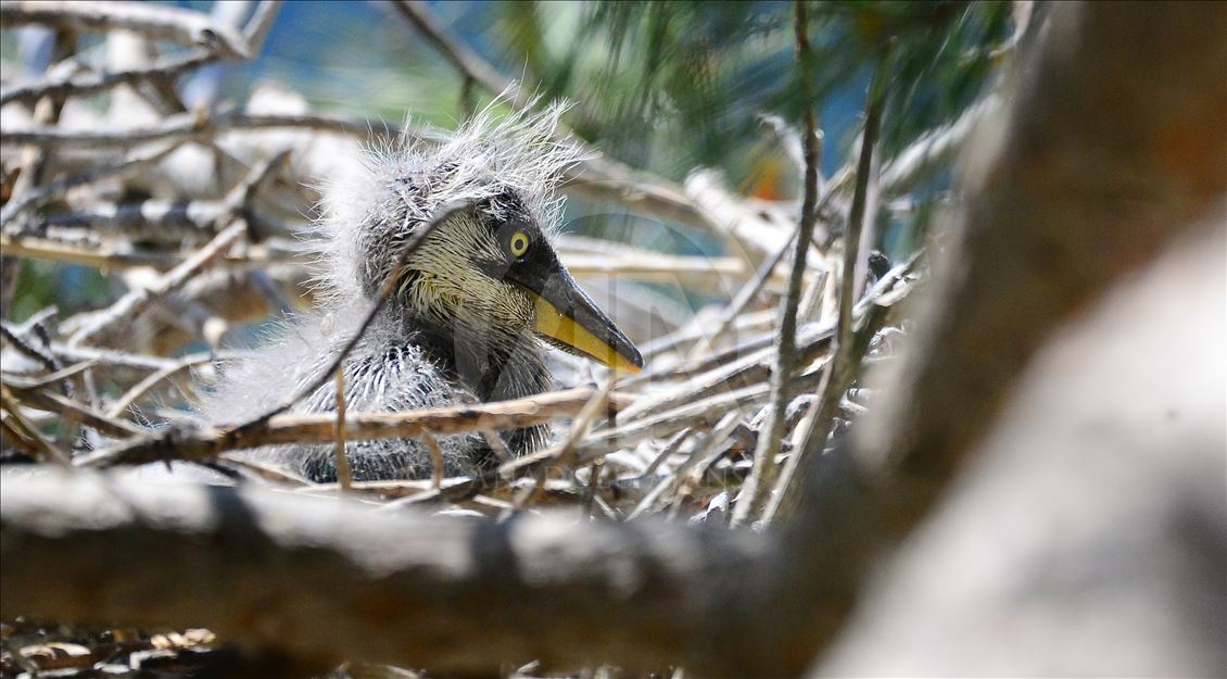 Uşak'ın Ulubey ilçesindeki Adıgüzeller Barajı su havzasında gri balıkçıl ve karabatak üreme noktasında sürdürülen etkin koruma yöntemleriyle bu yıl rekor kuş sayısına ulaşıldı. Baharın gelişiyle kuş yuvalarında yaşam mücadelesi hızlanırken gri balıkçıl yavrusu, yuvada annesini bekliyor. ( Soner Kılınç - Anadolu Ajansı )Soner Kılınç