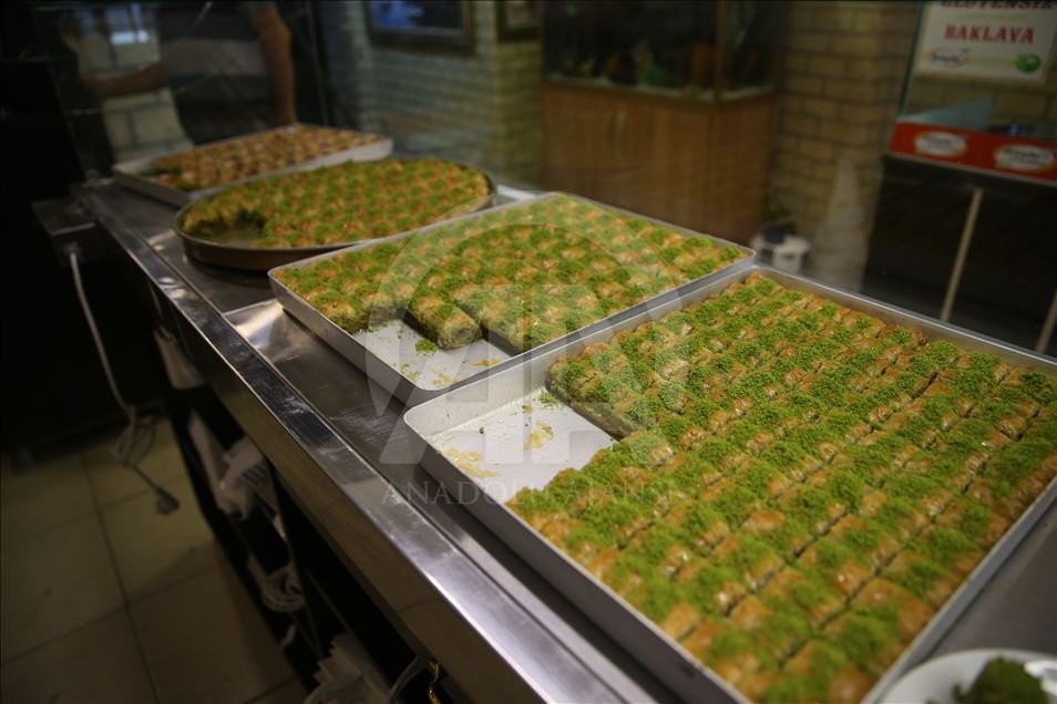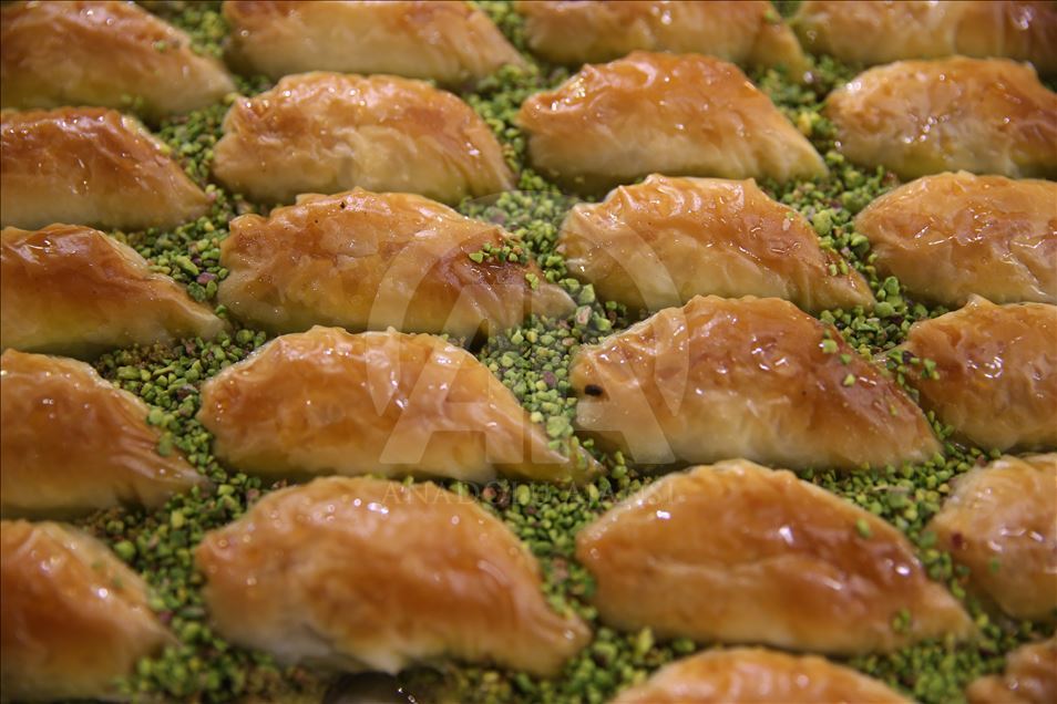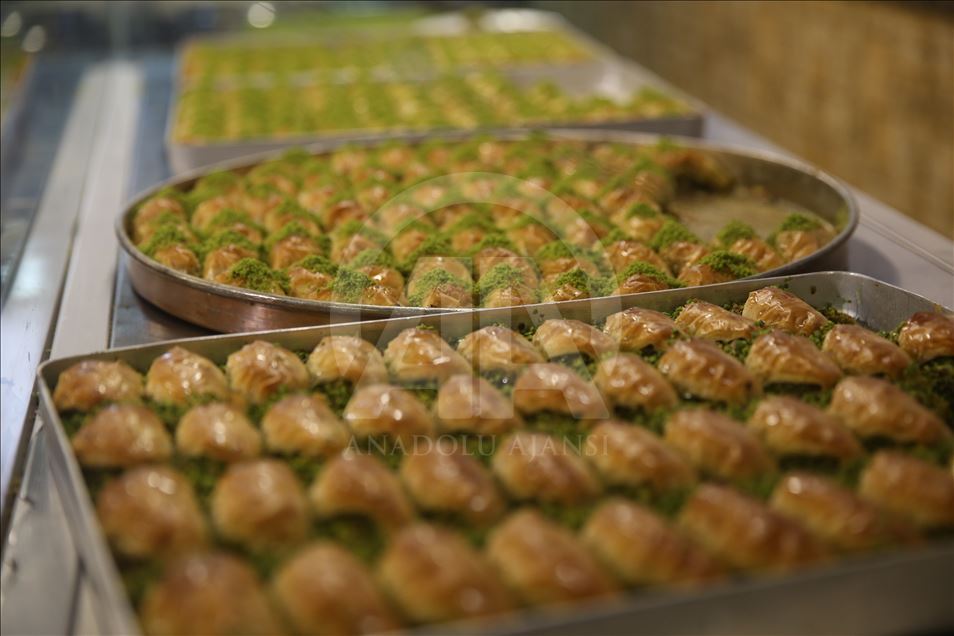 Türkiye'nin önemli gastronomi merkezlerinden Şanlıurfa'da baklavacılar, Ramazan Bayramı öncesi Türkiye'nin çeşitli illerinden gelen yoğun talebi yetiştirmeye çalışıyor.